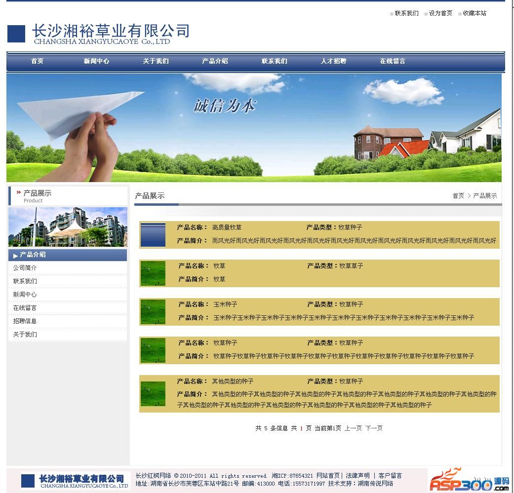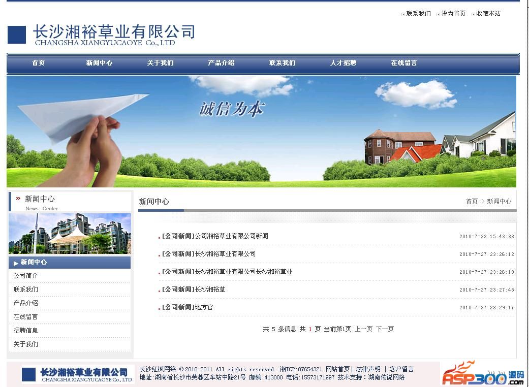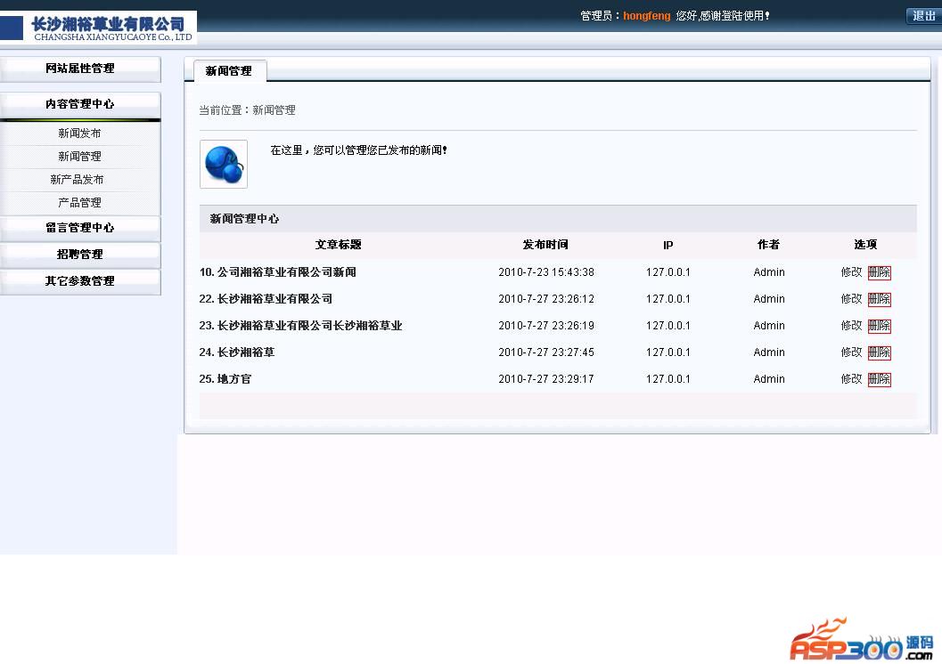 长沙湘裕草业有限公司是本人在2009年开发的一套后台管理系统和一个演示网站,现在客户不要了,共享出来,简介、高效、完整!无毒无插件,可以任意改造使用,但请保留后台版权信息,谢谢!