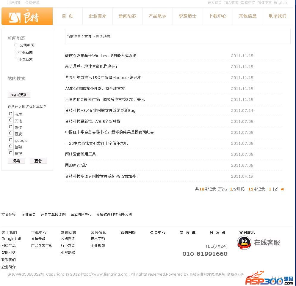 2. 新闻动态:发布企业新闻和业内资讯,从后台到前台真正实现无限级分类显示,并随意控制显示级数,大大增加信息发布的灵活性。