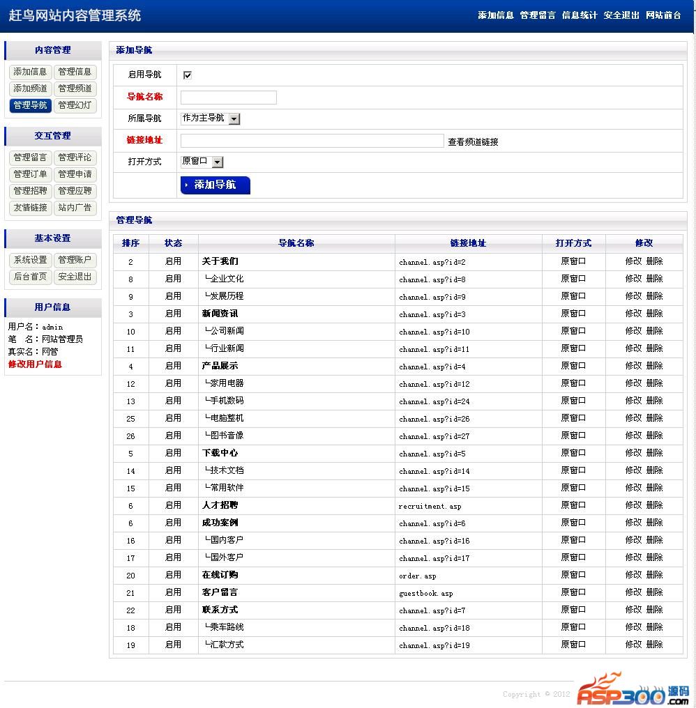 管理登录:/admin/login.asp 管理帐号:admin 密码:admin888