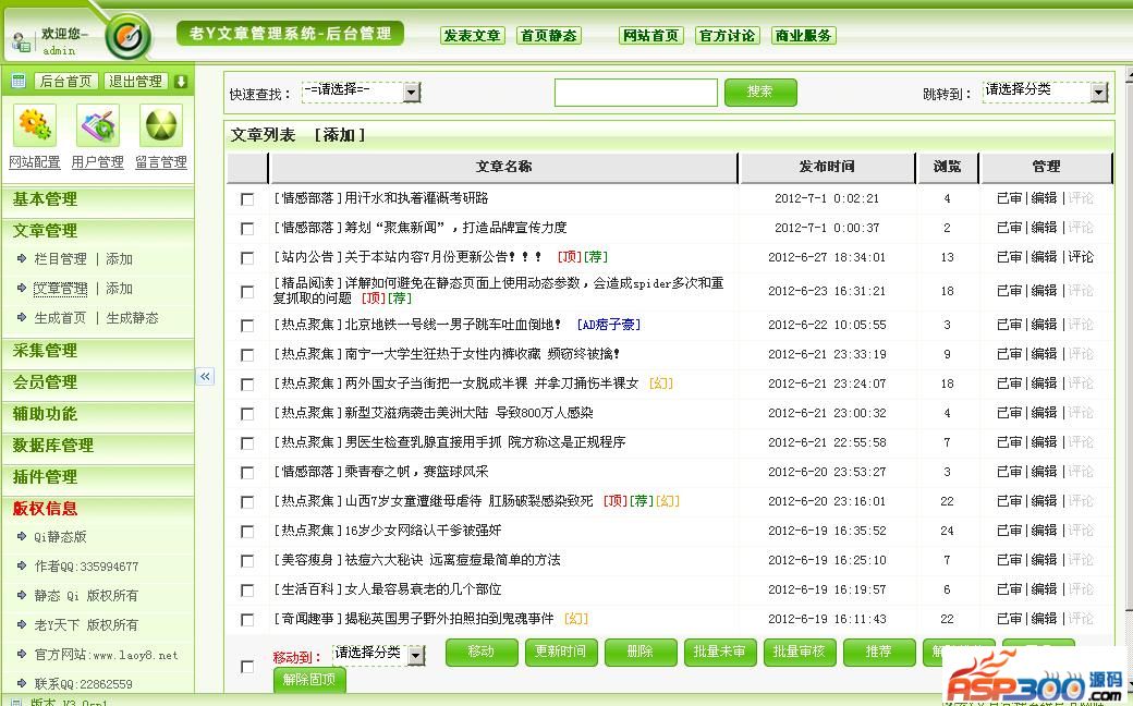 本网程序是采用老Y文章系统内核,感谢老Y文章系统的支持!本程序是在老Y3.0sp1的基础上加上一些板块然后通过完整的数据组合而成,页面布局清晰美观,板块齐全,适合个人类新闻站点的开设。 老y文章管理系统,采用Asp+Access开发,适应中小新闻文章型网站及个人网站需求,整个网站采用Div+Css布局,IE6、IE7、IE8、Firefox、Chrome下测试无误.