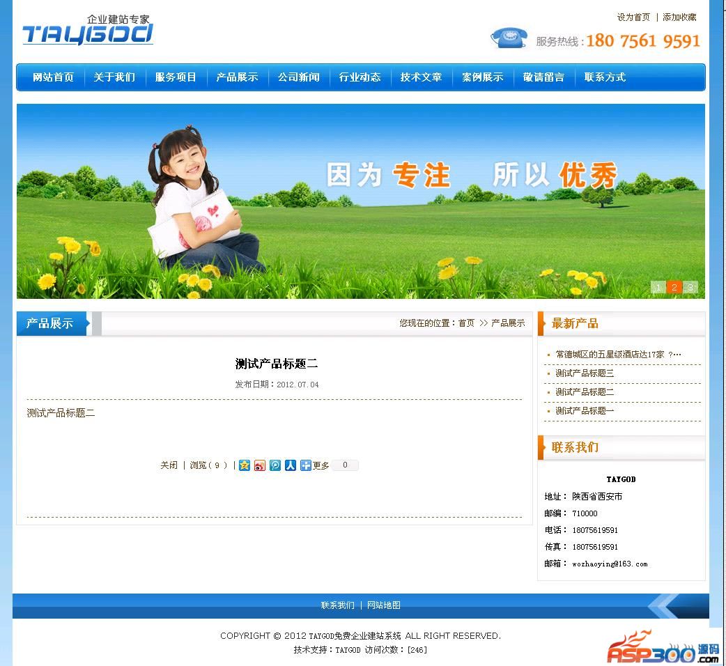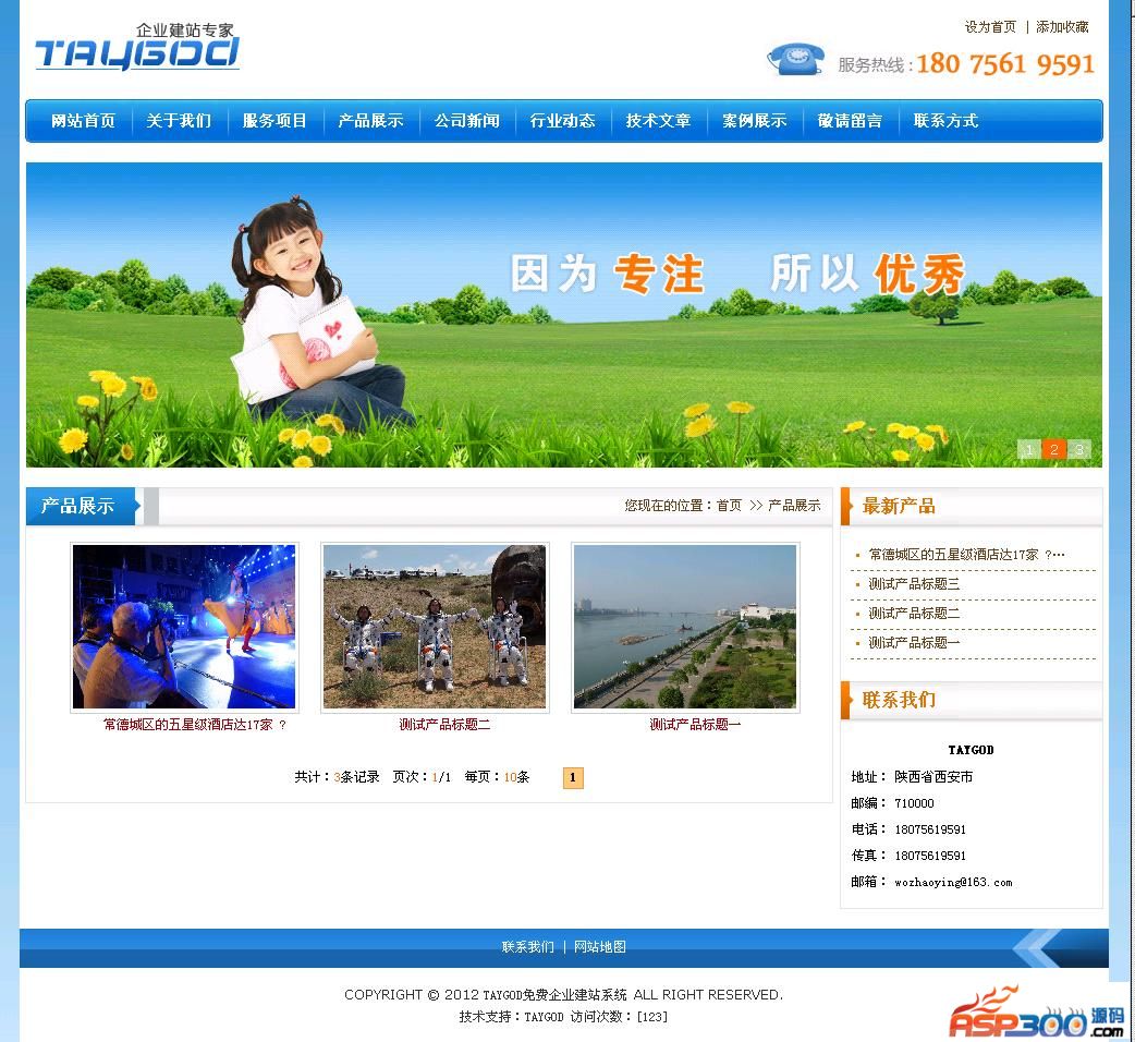 TAYGOD免费企业建站系统ASP版是一款基于asp+access的免费开源建站系统。整套系统的设计构造,完全考虑中小企业类网站的功能要求,网站后台功能强大,管理简捷,支持模板机制,能够快速建立您的企业网站。