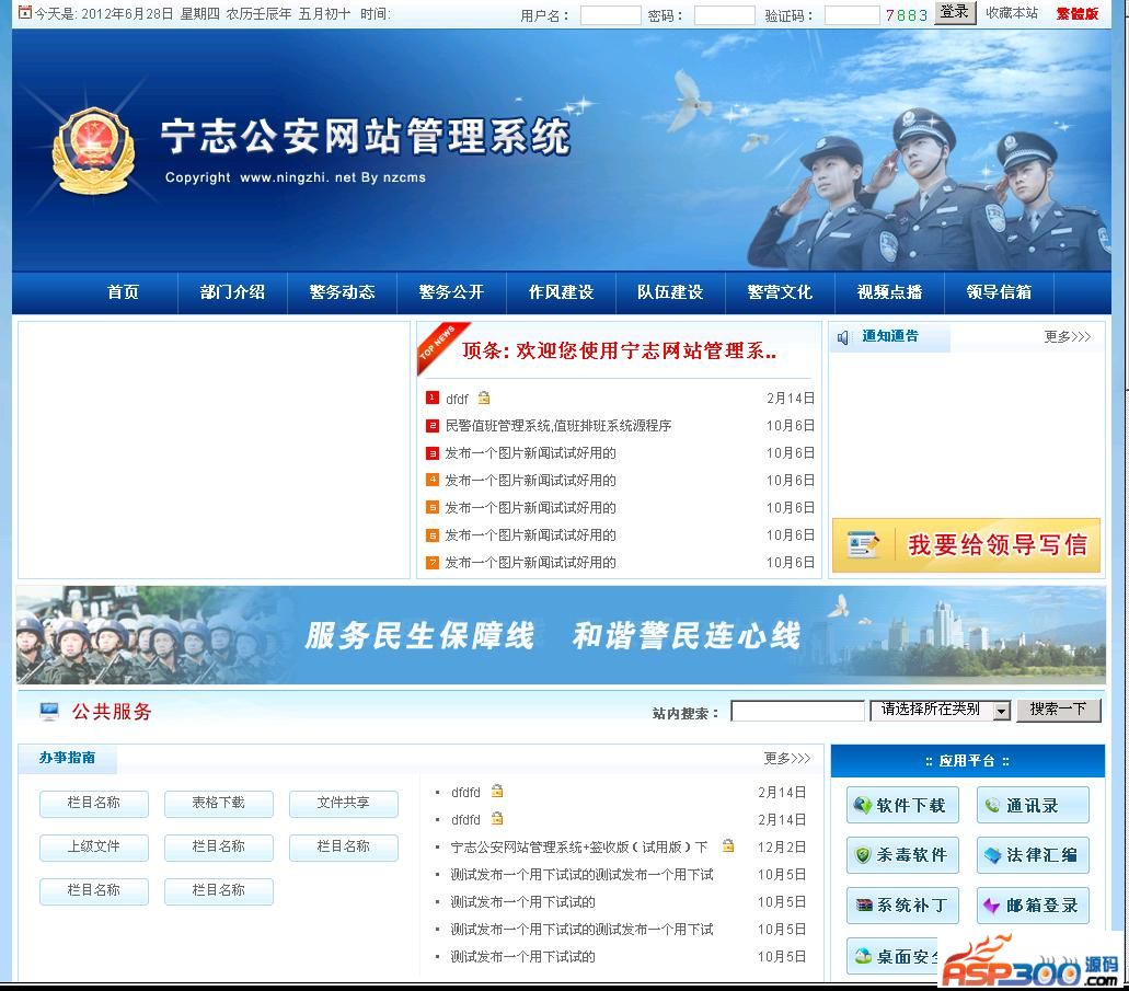 一套专为地方公安局建站首选的信息网站管理系统,天蓝色风格宽频页面十分大方。