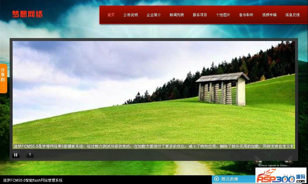 追梦FCMS5.1是梦想网络第5套模板系统,为5.0升级版,追梦系列每一套模板都经过多次筛选,每一款模板都尽量完美,追梦5系列保留了网站音频,相册,新闻等主要模板,用户无需编辑flash,只需通过后台页面添加数据即可,5系列模板,运行于ASP空间,采用的全屏100%覆盖技术可以屏蔽部分免费空间的广告!