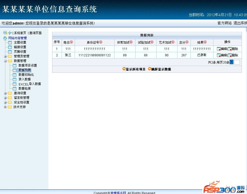 后台测试/manage/index.asp (用户名:admin,密码:admin)