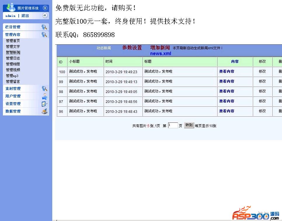 这个网站采用国外flash和xml模板,本人进行了汉化,整合了相关功能,添加了asp后台管理程序