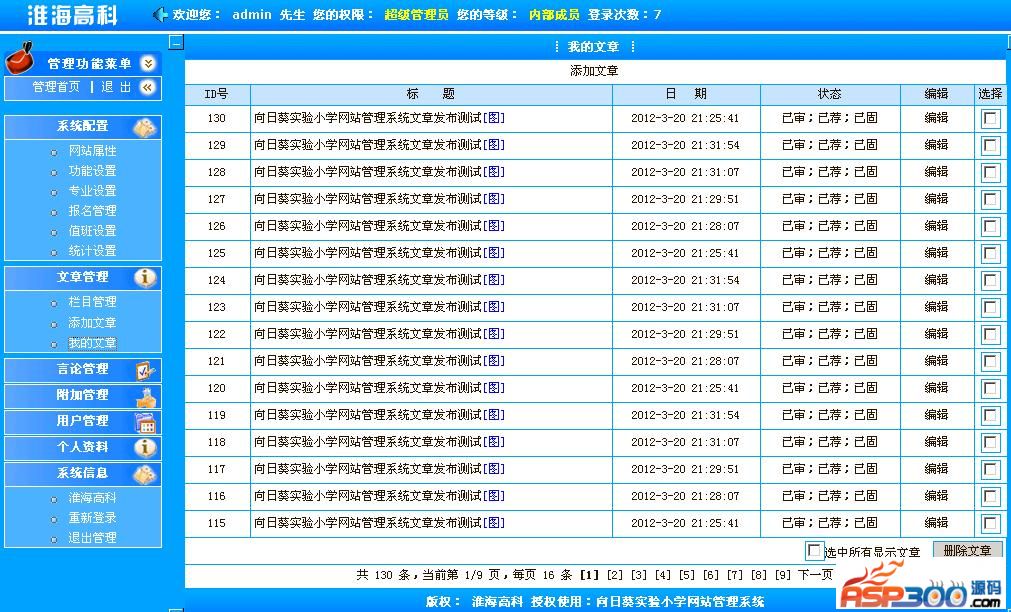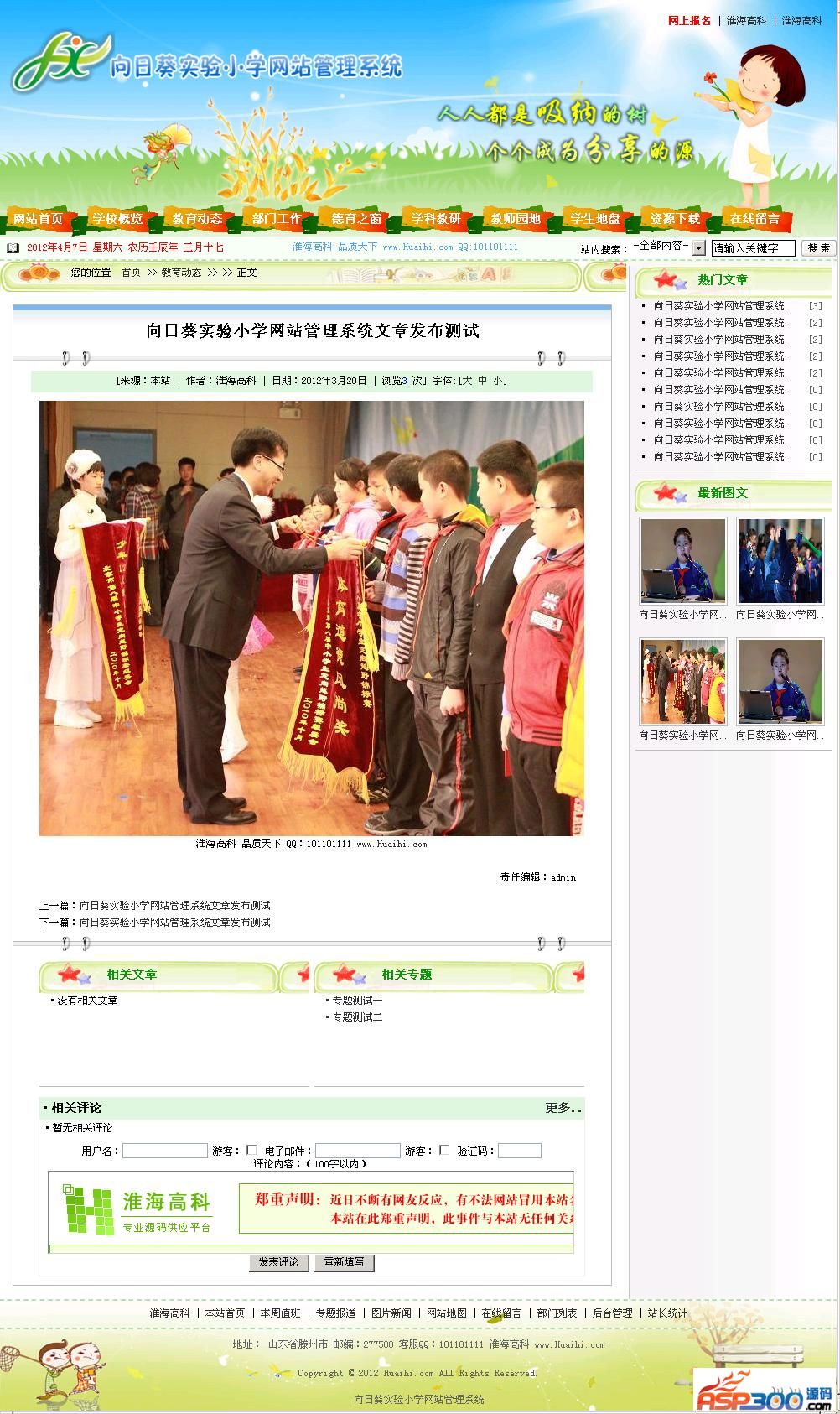 信息时代,各个学校迫切的需要一个学校网站,作为自己学校的网上门户网站。无论是作为学校上级主管部门要求学校上网的任务,更是由于形势所迫。没有自己的网站,就是少了一个跟别的学校的竞争力。作为一些私立的,民办的小学、中学、高中、培训学校、职业教育学校,更是需要一个专业、权威性的展示学校办学实力的学校网站。以宣传、推广自己学校,推广招生,实现办学投资收益怎么办?请网络公司、软件公司定做一个学校网站吧,但是时间很长、成本大、高,收费很高。做出来的版面很差,一点不合适学校。功能更是少,不成熟、漏洞百出。用着一点不安全,反而不利于学校网站的建设。达不到学校网站建立的真正目标。现在好了,有一套国内首创的学校网站系统正式版提供学校网站系统,全站源代码学校网站模板下载,它是国内最为知名的专著于学校网站建设的淮海高科开发的产品,我们有着十年的学校网站建设经验,几万学校用户。为他们提供了几十万页的学校网站网页设计,更是有着几十套推陈出新,紧跟学校建站市场的开发的学校网站管理程序。设计的非常漂亮美观的学校网站模板,同时提供有ASP学校网站系统免费下载。再也不用愁应该用什么学校网站程序,怎么去使用学校网站系统源码,怎么去突出自己学校网站的特色,有别于其它学校网站,突出自己学校的形象,增强软实力。相信淮海高科学校网站管理系统源码会给你带来高品质的使用体验!