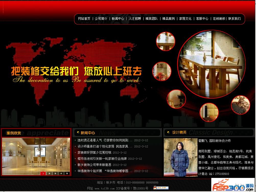 鹤壁江南装修装饰公司网站前台包括网站首页 | 公司简介 | 新闻中心 | 人才招聘 | 精英团队 | 精品案例 | 家居文化 | 客服中心 | 在线装修| 联系我们,后台功能完善,无任何限制。