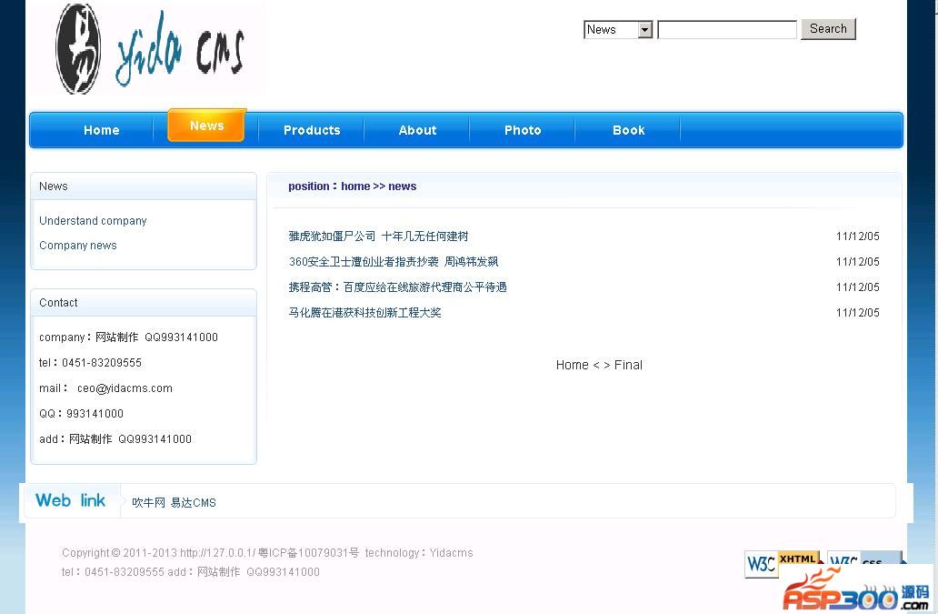 18.内置搜索功能,支持新闻、产品、文档、图文信息搜索,并自动统计关键字被搜索次数。而且在搜索时关键字漂红(像百度一样)