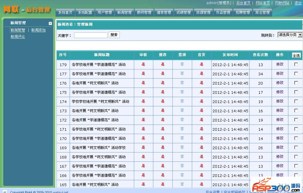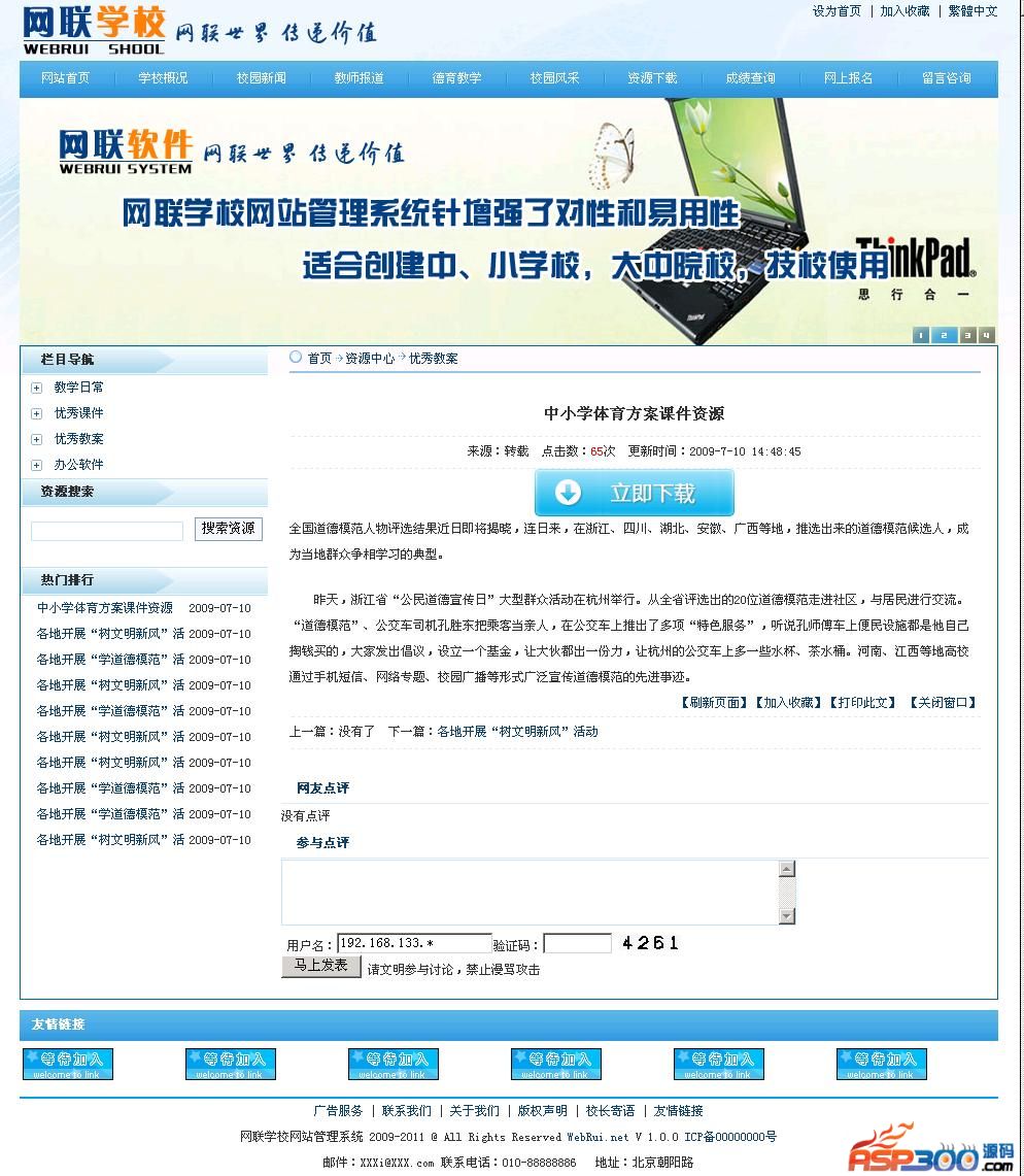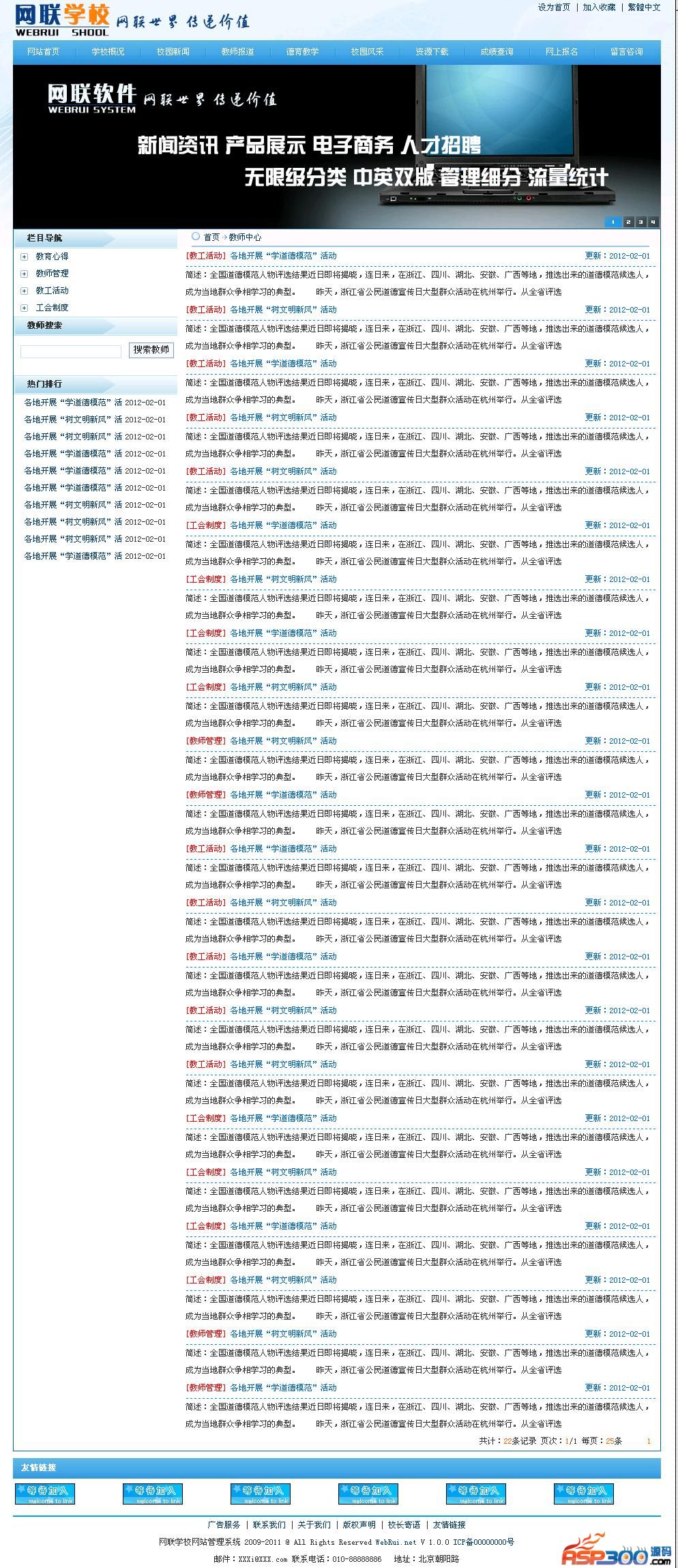 本网联学校网站系统是一套免费的学校系统,采用网络中已经成熟、稳定地技术ASP+Access/SQL开发而成,通过它,您可以很方便地管理自己的网站。