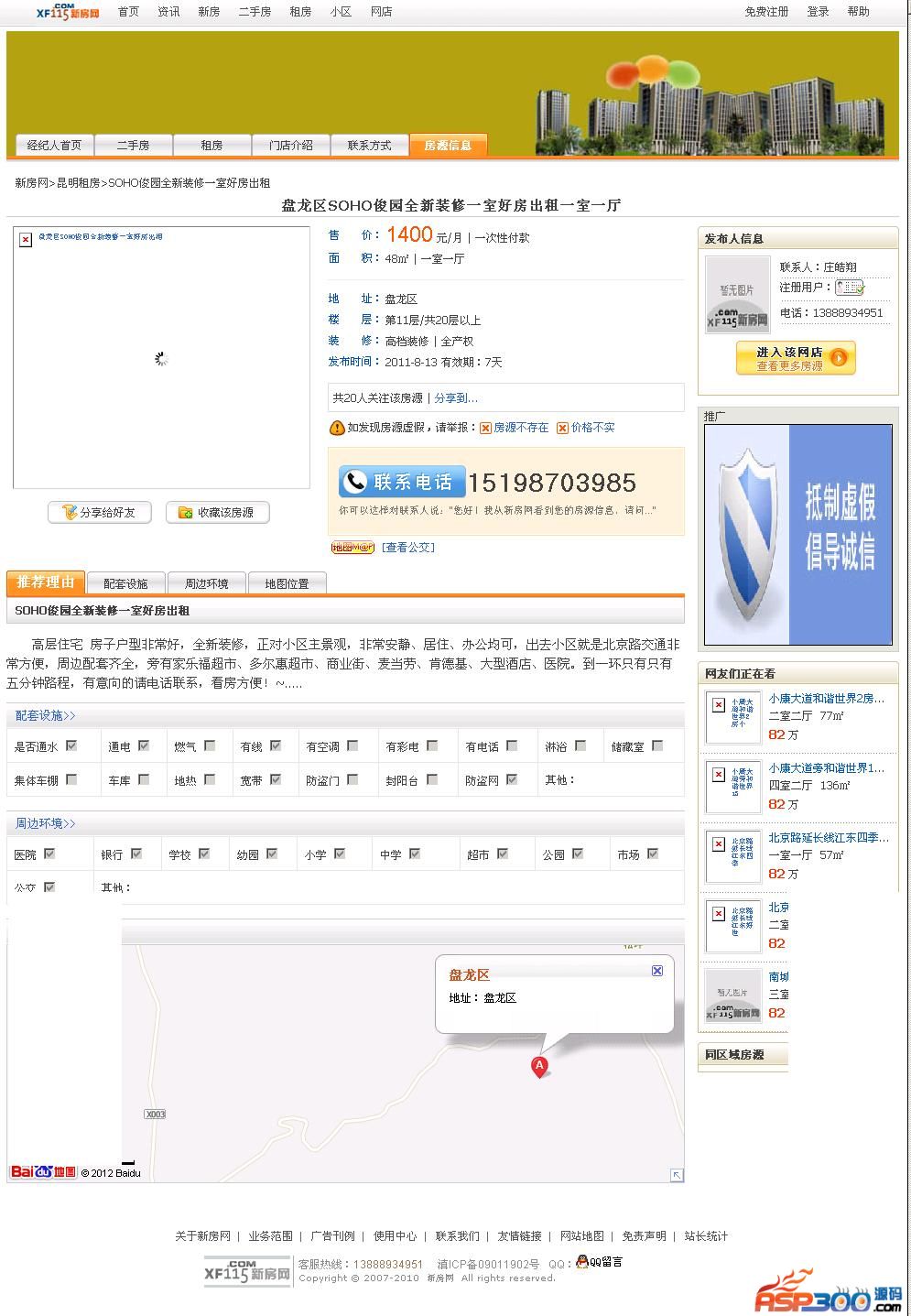 PS:此程序适用于所有需要建立房地产网站的网友,程序功能非常强大,代码简单易懂,适合二次开发,程序可满足各类大型房产门户及房产租赁平台建站需求。功能请下载或通过以下网站进行体验。