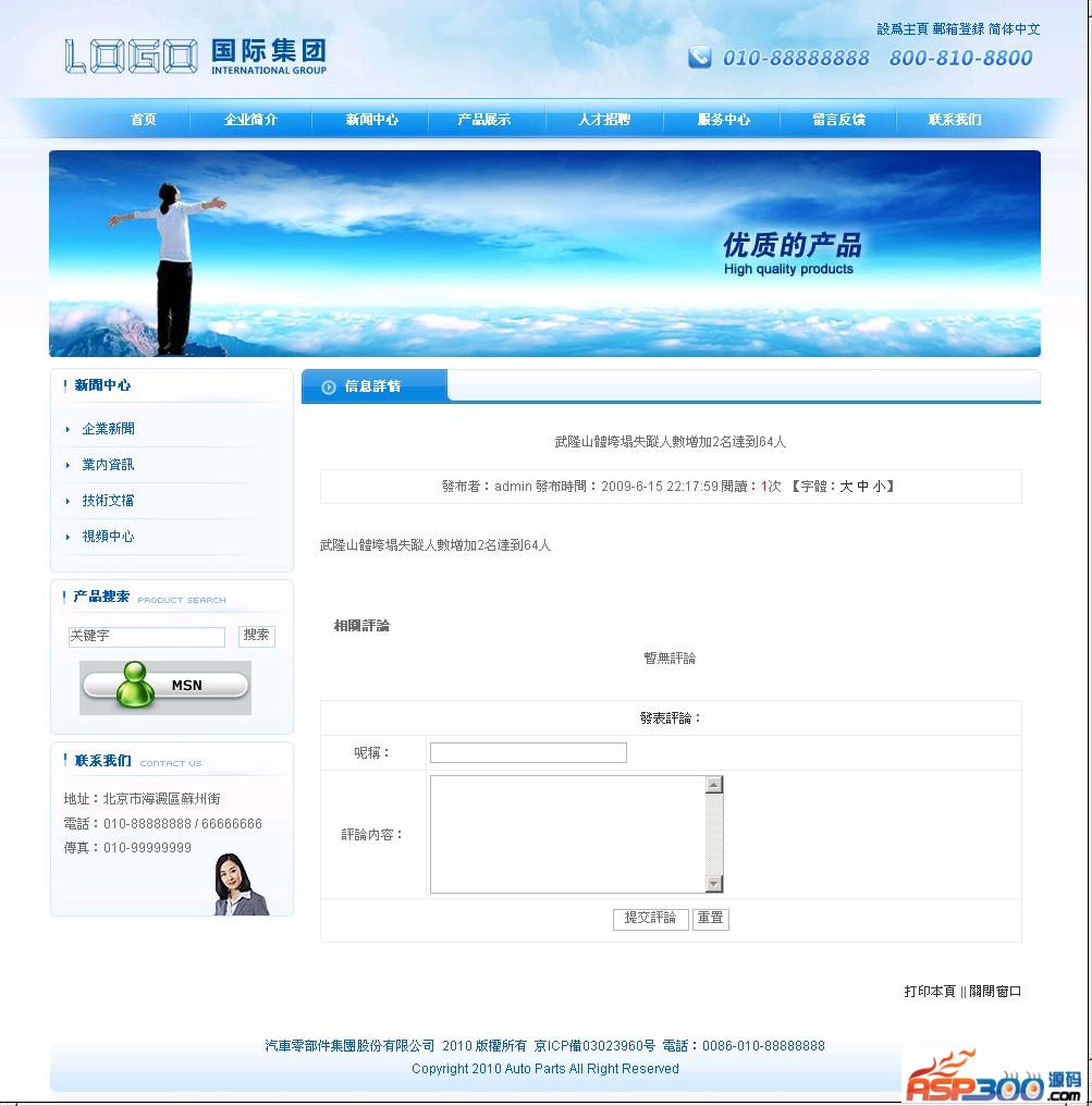 71code蓝色全能型企业网站系统,网站的风格框架都相当细腻完美。程序语言采用ASP+ACCESS数据库,简单的语言架构二次开发很方便,可以称之为是全能型的企业网站源码,对于各种企业均较为实用。