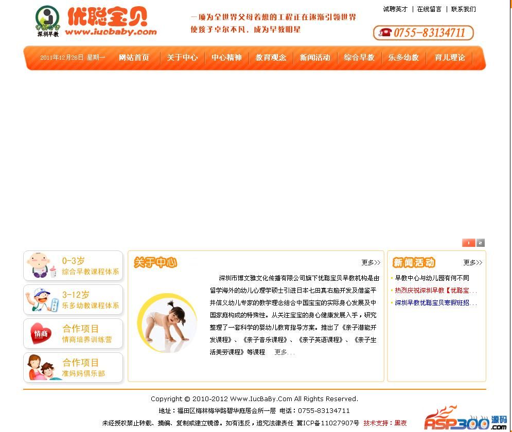 深圳市博文雅文化传播有限公司旗下优聪宝贝早教机构是由留学海外的幼儿心理学硕士引进日本七田真右脑开发及借鉴平井信义幼儿专家的教学理念结合中国宝宝的实际身心发展及中国家庭构成的特殊性。从关注宝宝的身心健康发展入手,研究整理了一套科学的婴幼儿教育指导方案。推出了《亲子潜能开发课程》、《亲子音乐课程》、《亲子英语课程》、《亲子生活美劳课程》等课程。