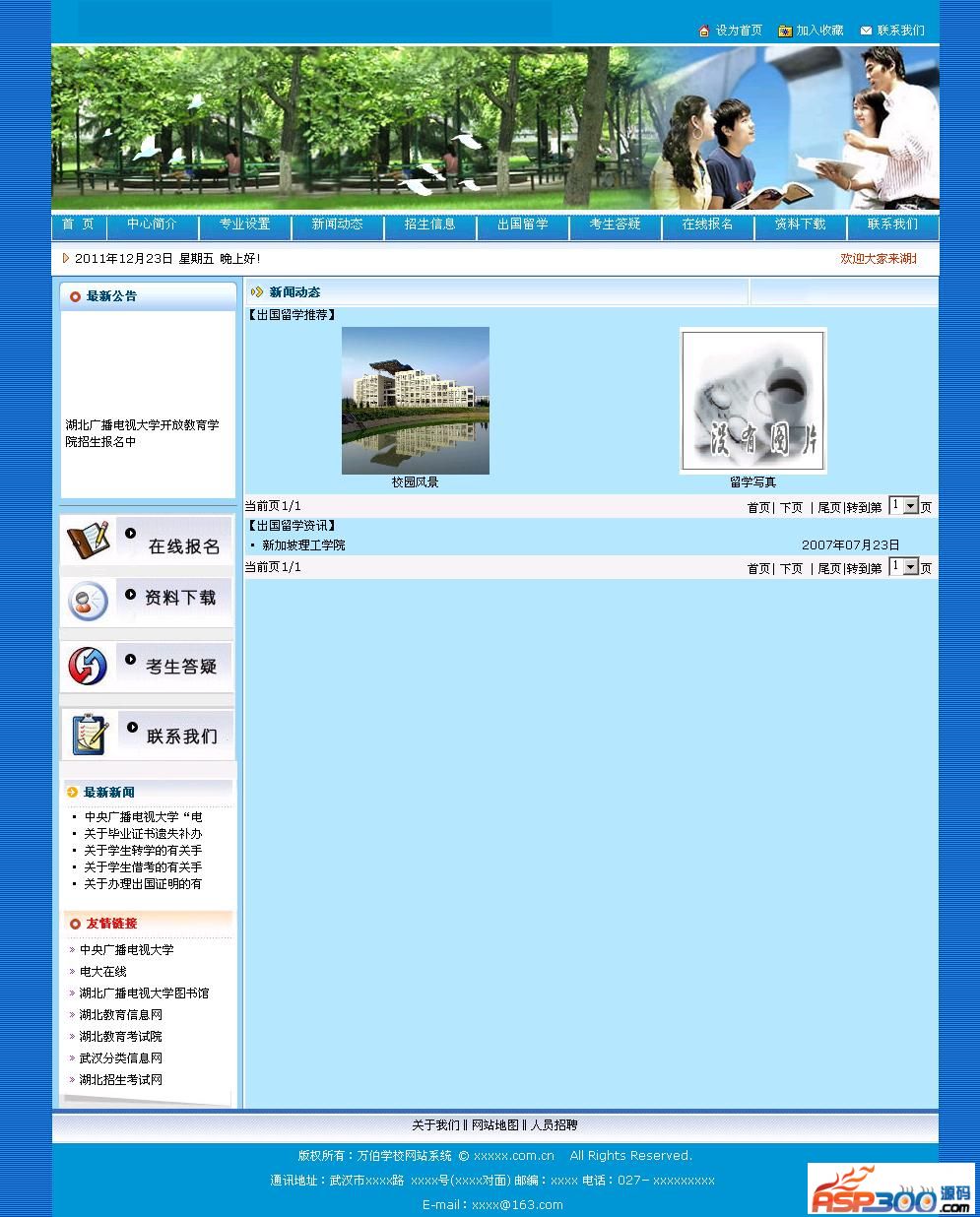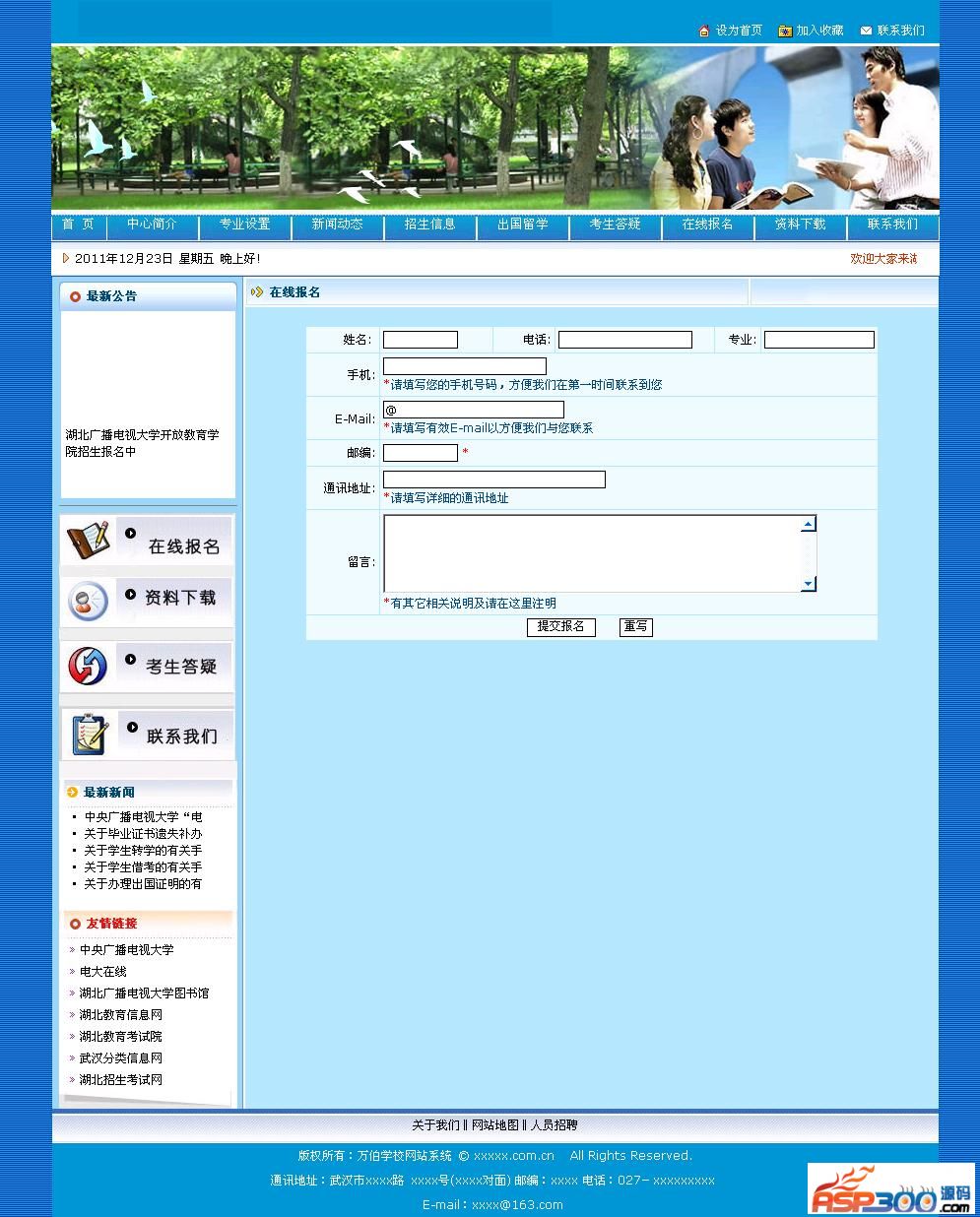 可在线发布学院新闻文章,公告,查看管理学生的留言等。