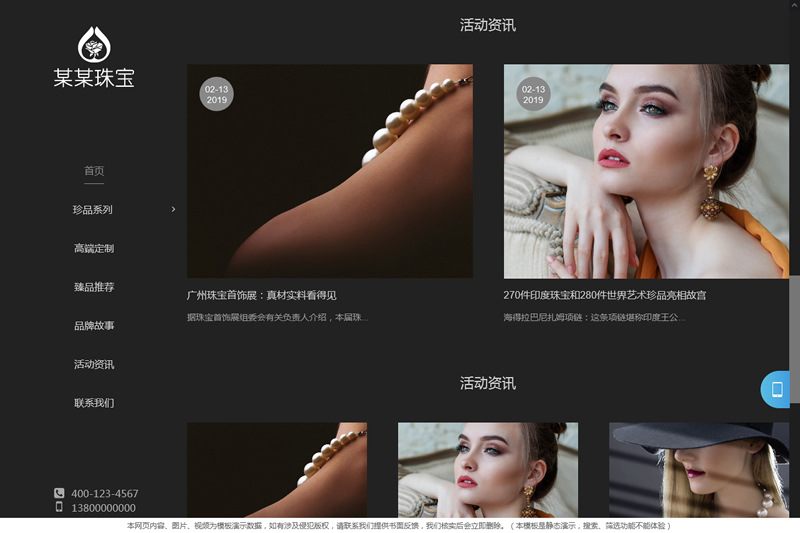 珠宝首饰展示网站框架特点: