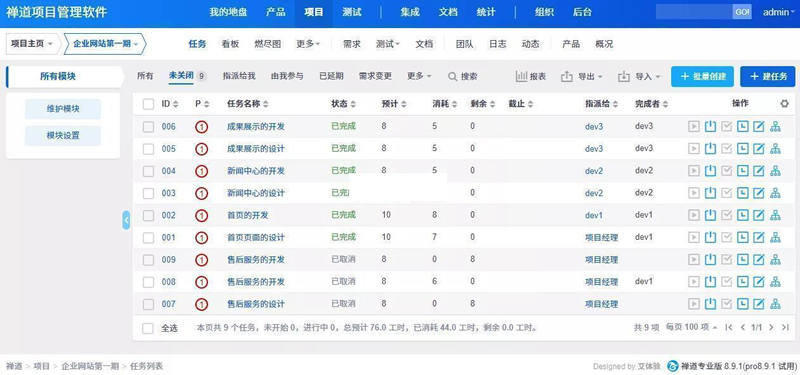 禅道专业版是在禅道开源版的基础上增加增强功能的版本,推出的初衷是为IT企业或部门提供更完善的服务,其增强功能更加适合企业内部的流程化管理。