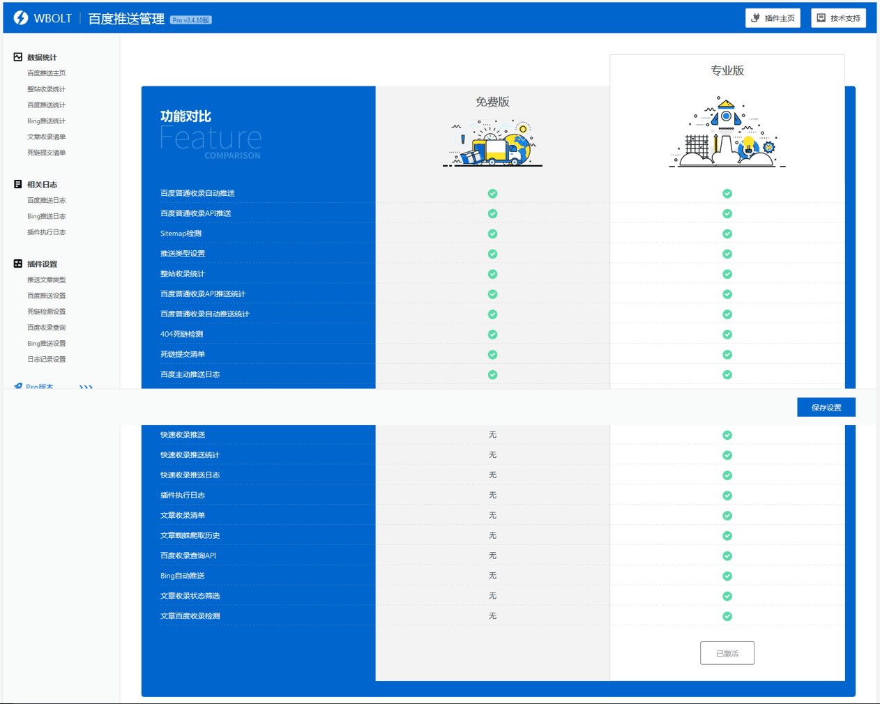 插件执行日志-该功能主要用于站长快速查看插件执行的收录推送、定时任务、收录查询、收录概况等插件相关执行日志记录,以便于快速定位排除插件问题。