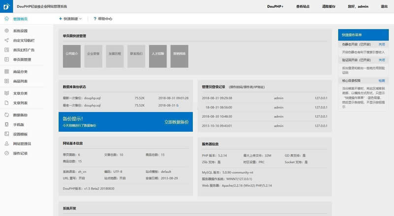 DouPHP是一款轻量级企业网站管理系统,基于PHP+MYSQL架构的,包含“手机版”、“公众号管理模块”、“小程序”,可以使用它快速搭建一个企业网站。
