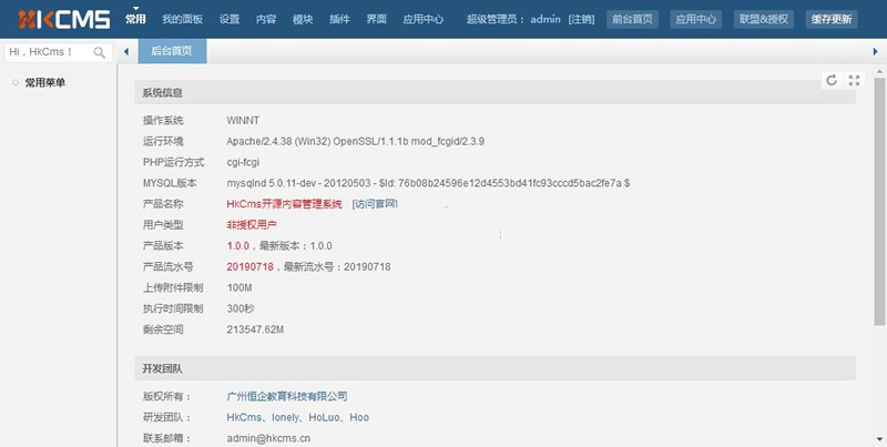 HkCms开源内容管理系统是一款基于ThinkPHP6.0开发的CMS系统。以代码开源、免费商业授权、系统易安装升级、界面功能简洁轻便、易上手、插件与模板在线升级安装、建站联盟扶持计划等优势为一体的CMS系统。