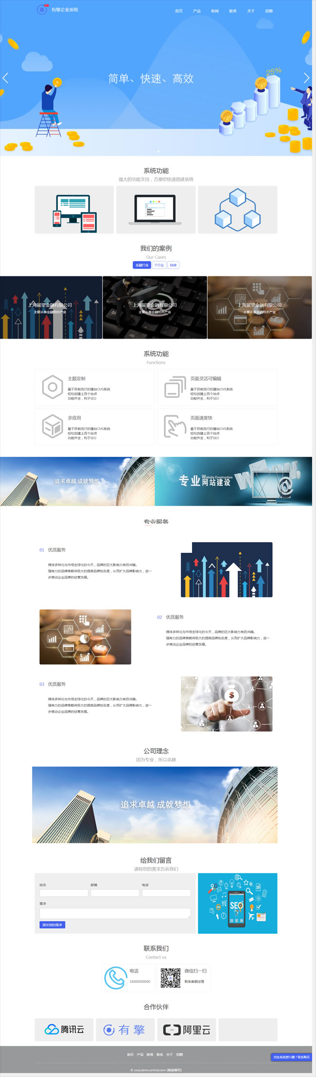 有擎企业系统是一套可快速搭建企业官方网站的官网系统,可以通过后台进行简单的配置即可拥有自己的企业系统。有擎企业系统,快速、灵活的搭建企业官网系统。