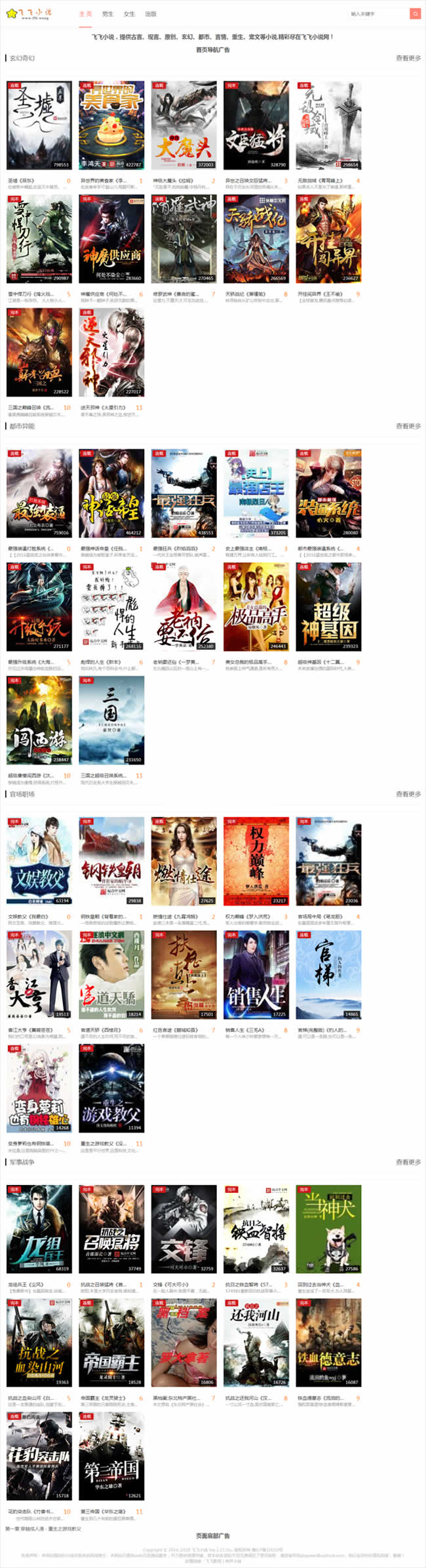 飞飞小说是一个以PHP+MySQL进行开发的PHP小说采集网站程序,真正的懒人必备。本小说程序采用文本缓存方式存储,程序运行速度飞常快速。本程序无需费心管理,让不懂程序开发又没有太多时间经常更新数据的朋友,可以快速搭建一个属于自已的小说网站。