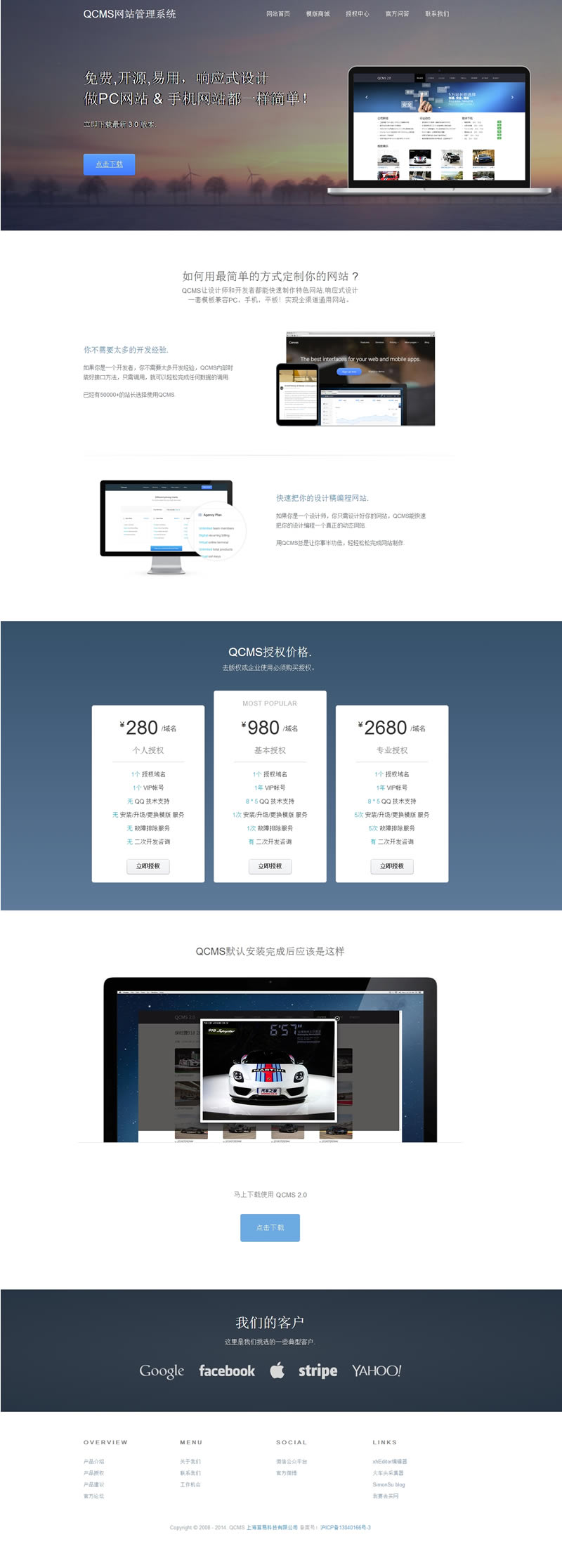 QCMS网站管理系统是通过MVC架构开发的一套PHP轻量级系统,它免费、开源、小巧、易用,功能强大,可以自定义模块,容易二次开发,可以称得上是万能CMS系统,可用于企业站、文章站、图片站、下载站,你只要能想得到,就能做的到。