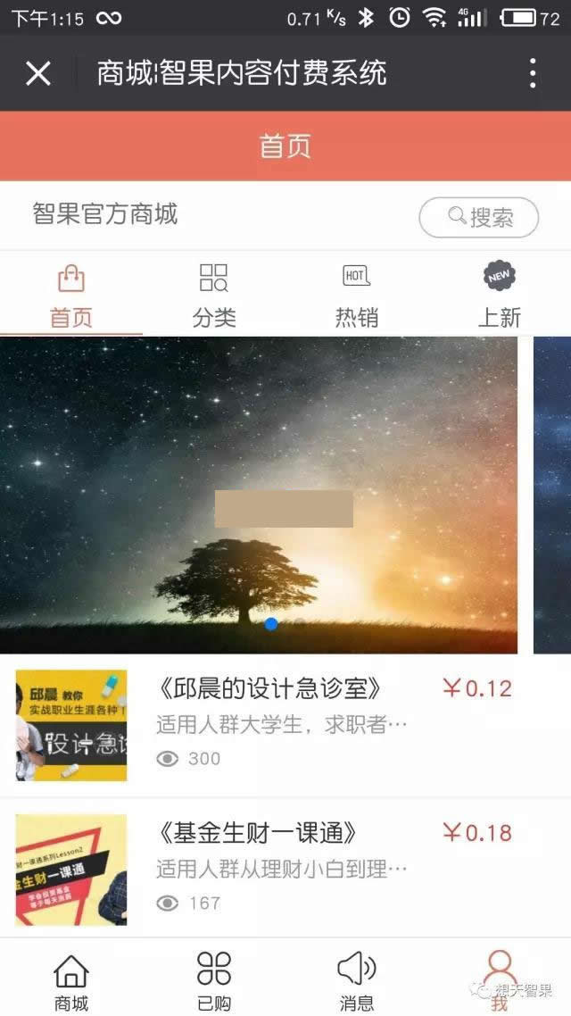 智果内容付费系统有以下几个优势:1.基于OpenSNS微社区系统,与OpenSNS共享资源,同时也非常利于与社交系统结合。2.支持多种内容类型(免费版有图文,商业版本含音频、视频等更多形式)3.支持在微信环境下无缝使用4.支持便捷的广告位管理5.支持营销扩展6.商业版未来还将支持多级分销