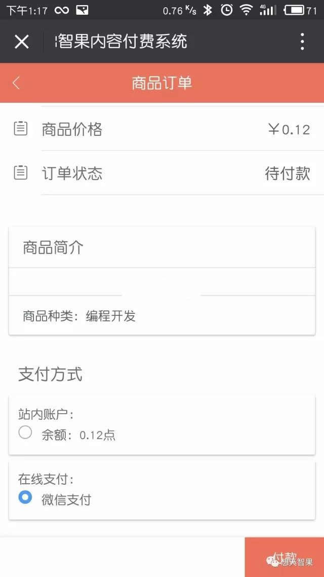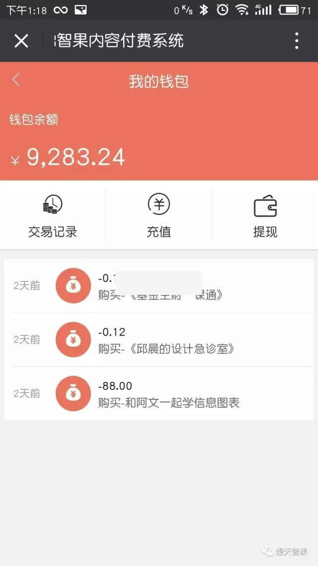本版本包含了核心的功能模块1.文章类型的内容购买与付费2.对微信的友好支持(公号菜单、登陆、微信支付)3.钱包功能