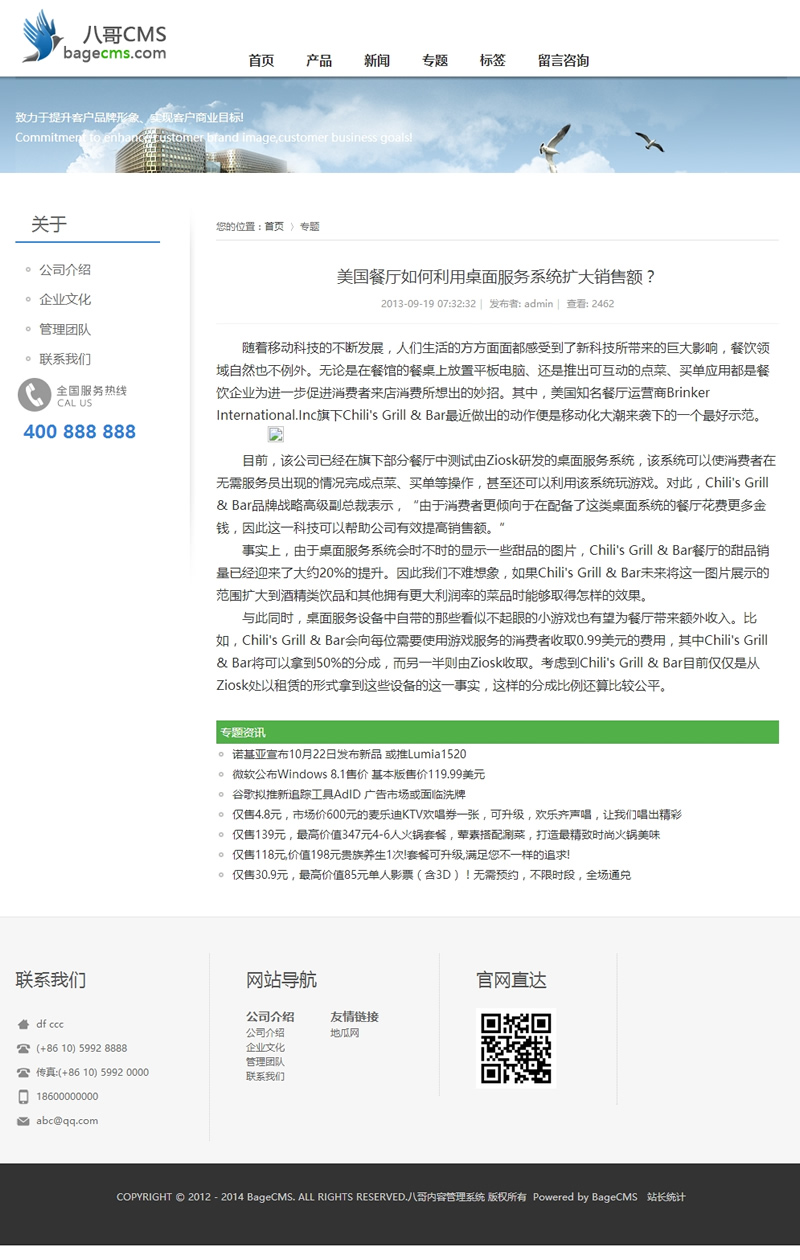BageCms是一款基于php5+mysql5开发的多功能开源的网站内容管理系统。使用高性能的PHP5的web应用程序开发框架YII构建,具有操作简单、稳定、安全、高效、跨平台等特点。采用MVC设计模式,模板定制方便灵活,内置小挂工具,方便制作各类功能和效果,BageCms可用于企业建站、个人博客、资讯门户、图片站等各类型站点。