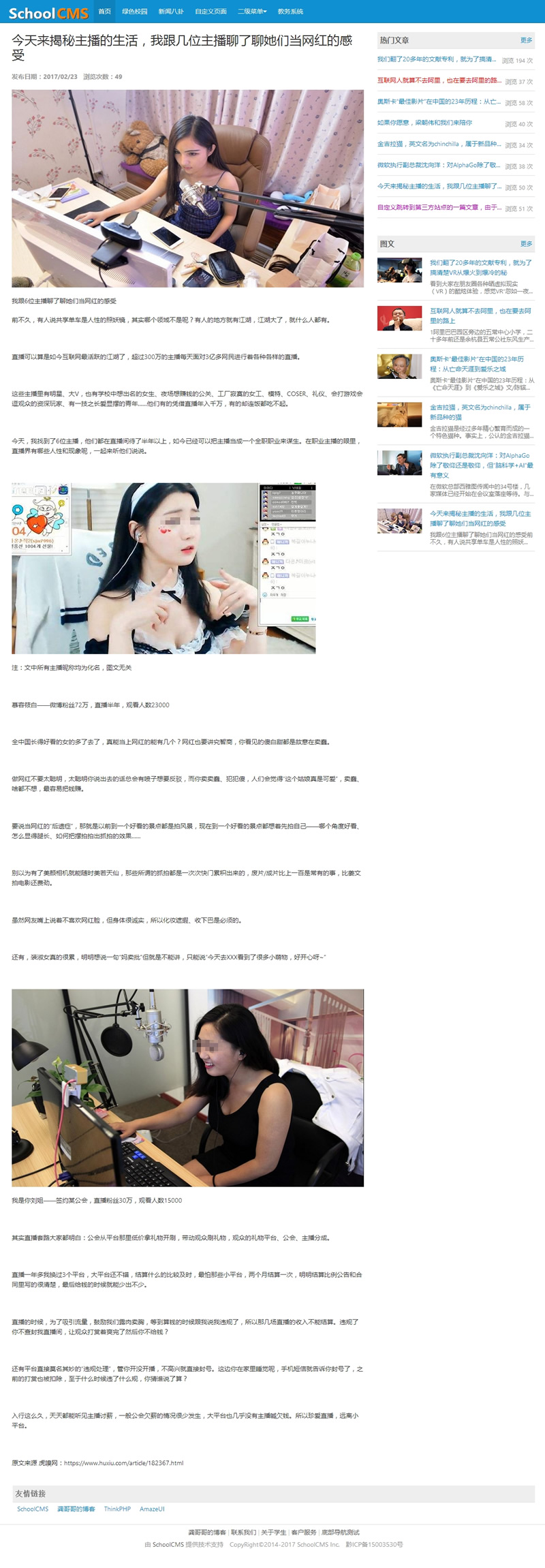 SchoolCMS学校管理系统基于ThinkPHP框架,安全可靠,开源免费,丰富的HTML5组件,电脑+手机自适应。SchoolCMS 2.3.1 更新日志:2017-05-11优化 1.前台关闭用户注册提示优化;2.可关闭文章图片比例限制;3.前台底部可直接查看当前版本号。 新增 1.网站设置新增开发者变量标记; 2.新增主题设置,主题上传,随意切换; 3.新增模板开发能力; 4.新增多种幻灯片模块; 5.布局模块数据支持导入/导出。