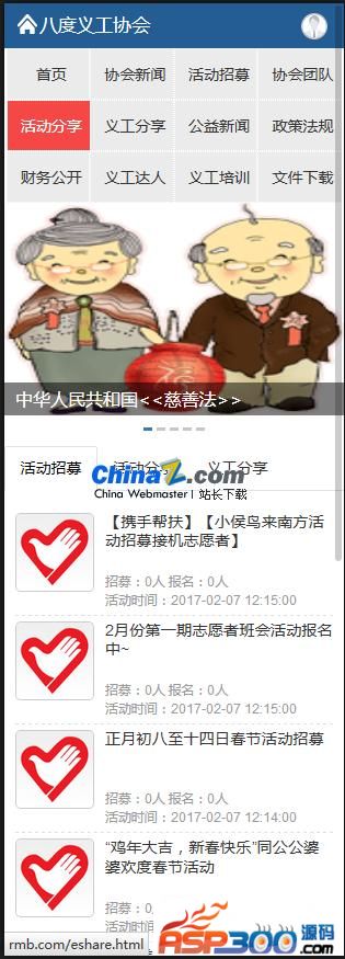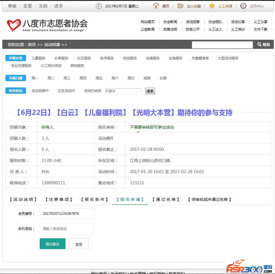 功能特色:无缝支持PC或移动端访问,根据访问用户设备系统自动切换访问界面。支持自定义格式报名表单,比如有些活动需要志愿者选择上午或者下午,是否携带朋友参加等,这些通过自定义格式报名表单就可以解决,告别千篇一律的报名格式选项,让志愿管理可以更个性更科学!支持会员编号自定义设置格式。比如 区号+编号等。支持在线求助于捐赠登记服务,方便志愿者与市民自主沟通。支持无限级分类,包括文章或活动类型。支持义工根据星级自动晋升。比如满100小时,自动升级到一星级志愿者。支持义工证书在线生成图片,方便志愿者分享。支持服务时数在线查询。支持志愿者在线请假、取消参加活动等个性服务设置。支持活动人员审批、服务时数批量管理等。更多很赞的功能,请自行安装体验。