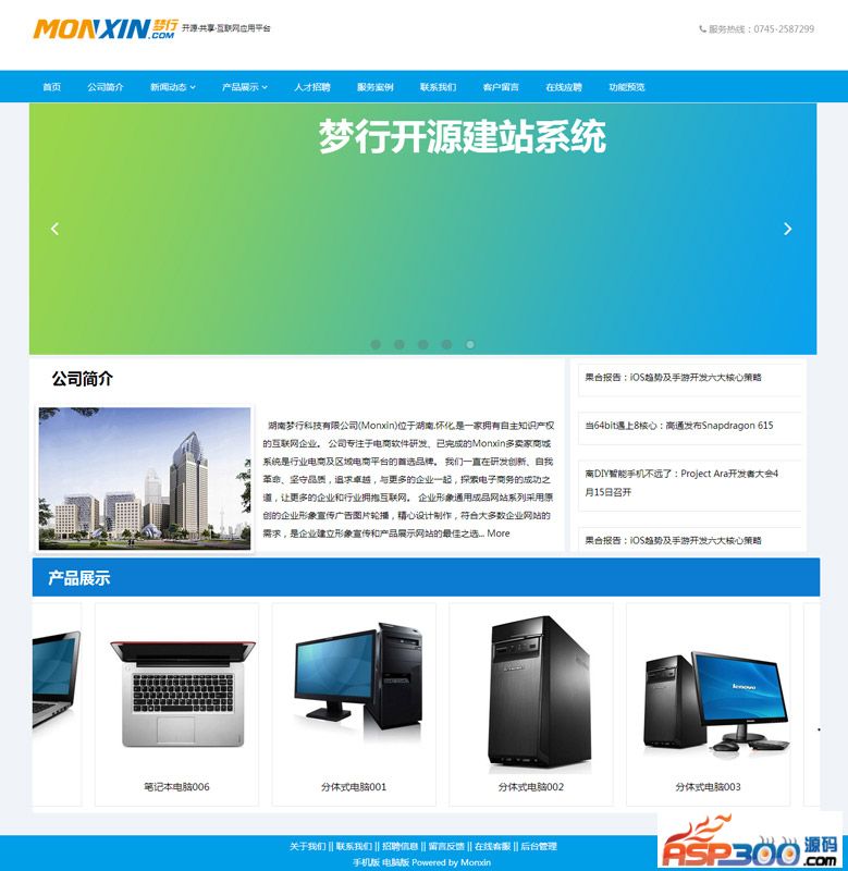 梦行Monxin企业建站系统是采用PHP+MySQL方式运行的开源程序。主要特点在于:模板界面随意换、