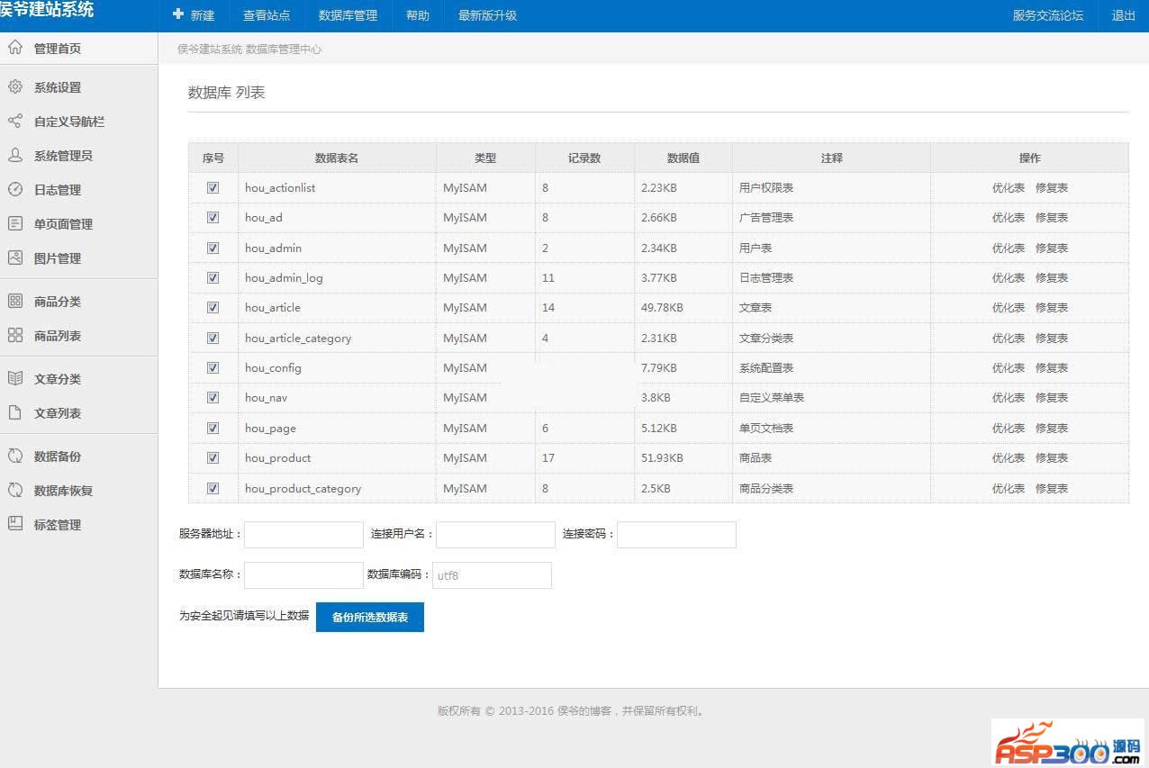 2:因时间关系,未能写上安装程序,大家可以自行写一个或直接将houyecms.sql文件导入即可。
