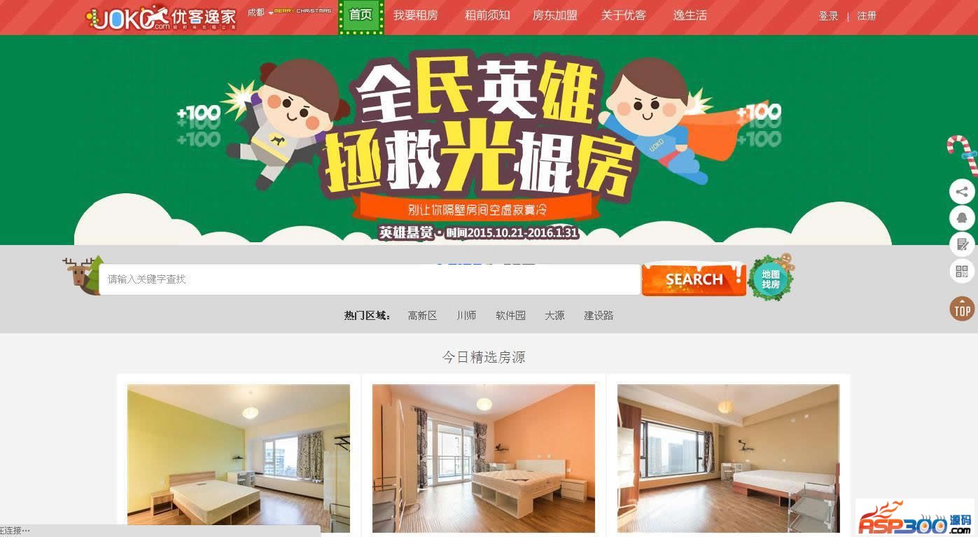 优客逸家合租网源码,DEDECMS内核,内附数据,界面漂亮,适合高端房屋租赁网站使用