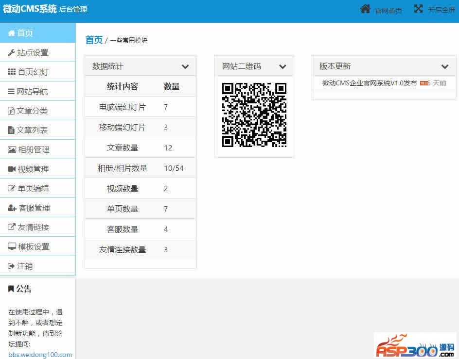 微动企业门户系统,简洁,内容一目了然,满足常规展示型网站的需求,幻灯片、文章管理、图片管理、视频管理、客服管理。