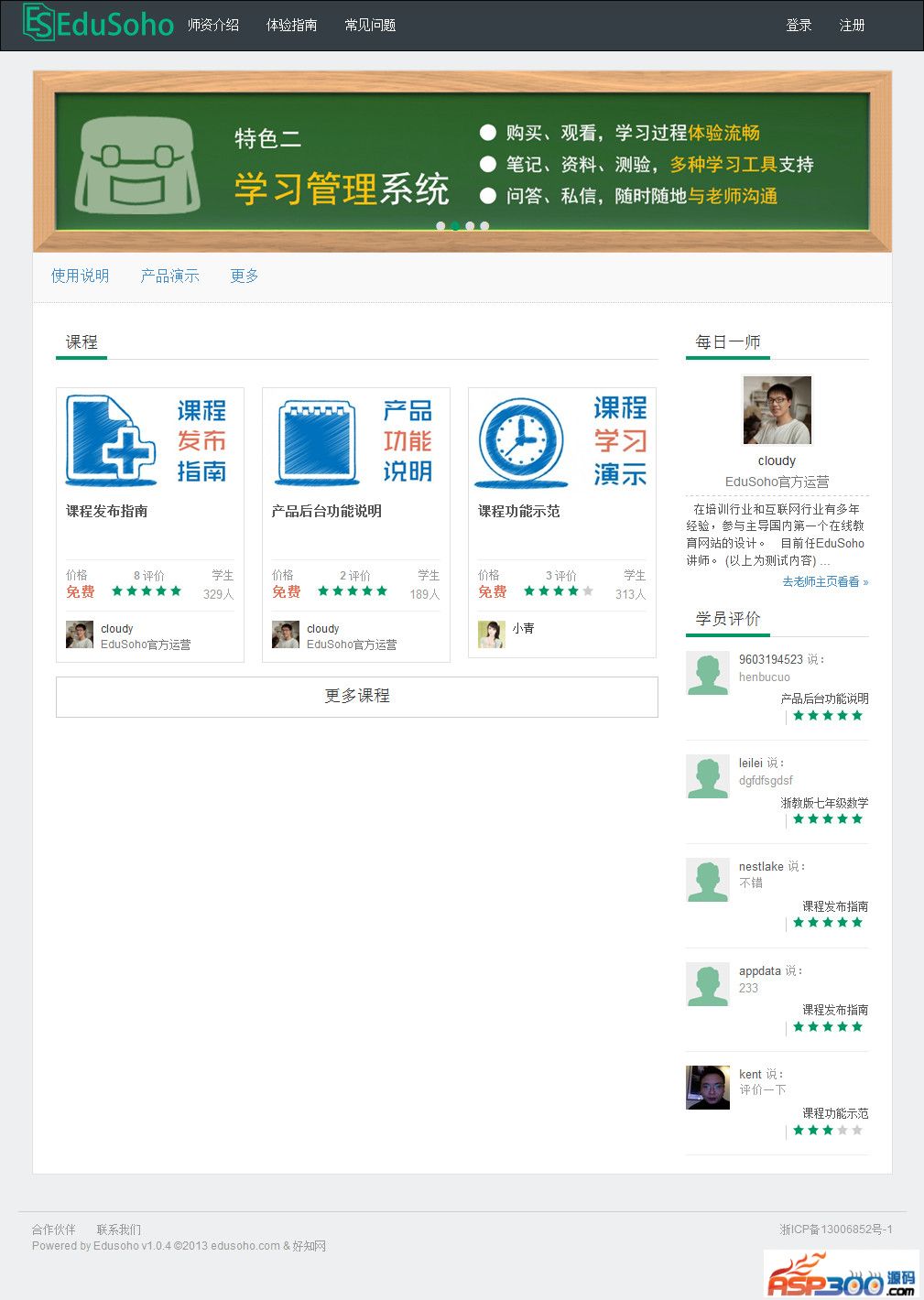EduSoho是杭州阔知网络科技有限公司推出的开源、免费的互联网教育产品,帮助企业、个人快速建立互联网教育网站。本开源软件简洁易用,定制性强,是开展互联网教学、销售、推广的最好的选择。