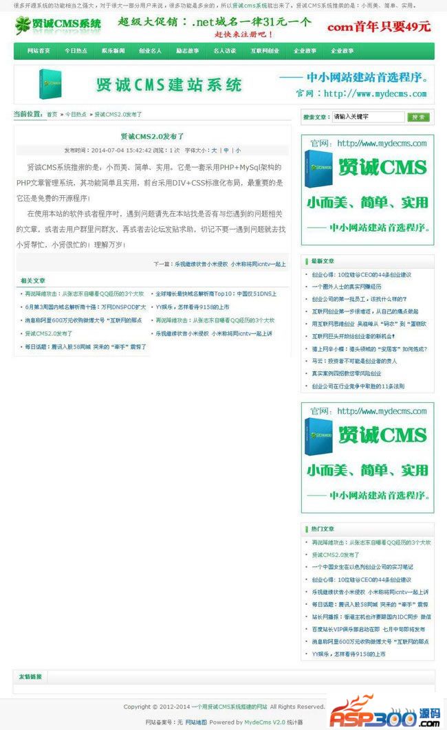 贤诚CMS2.0并不是在CMS1.0代码的基础上增加代码,而是从零开始,所有代码重新编写,CMS1.0的时候代码基本上完全属于混编,对OOP面向对象也运用得非常少,而CMS2.0更多的符合OOP编程思想,还采集了当前很流行的MVC框架开发思维,采集统一URL入口页面。