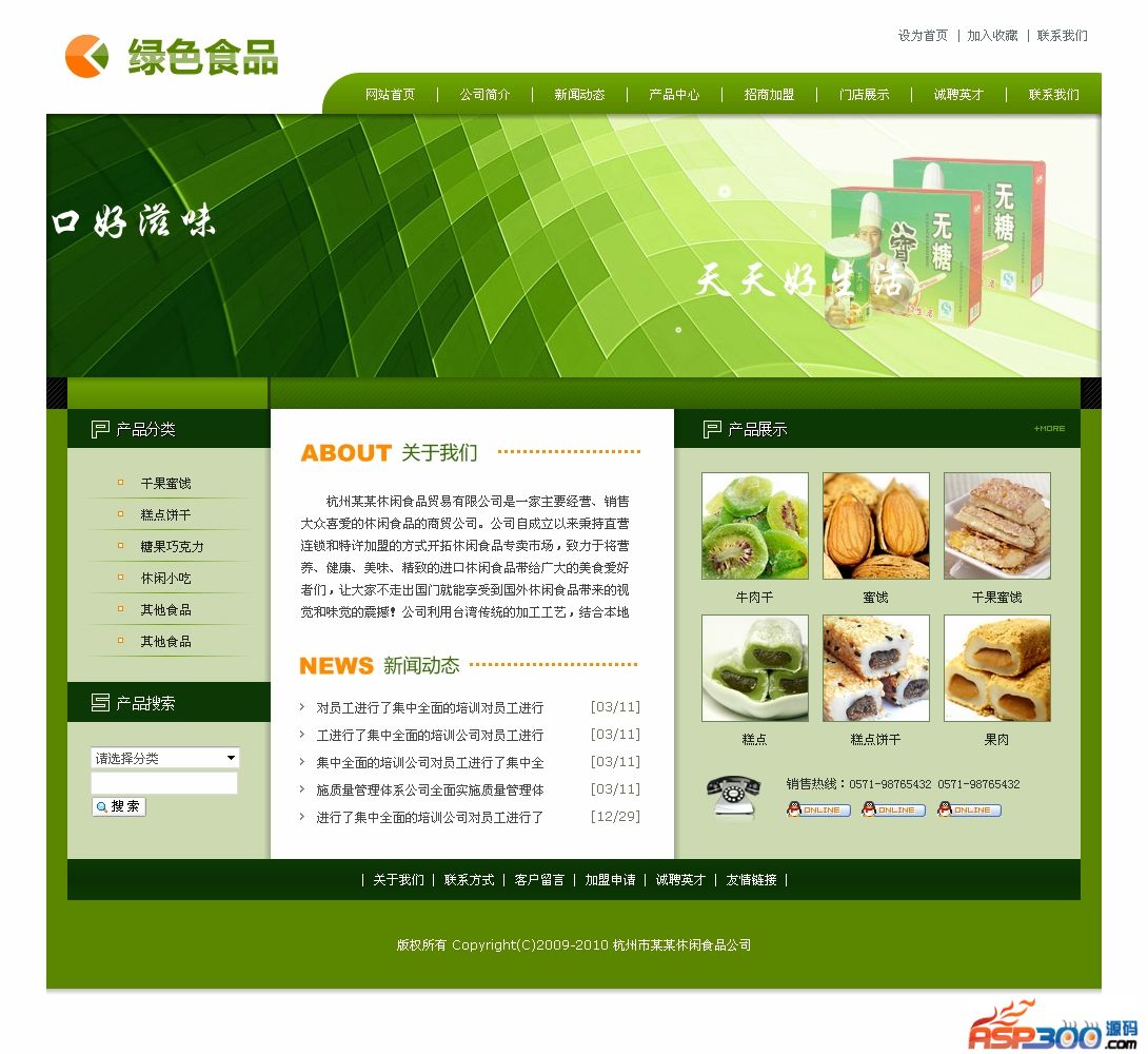 绿色食品公司网站源码模块介绍:基础功能模块,企业招聘模块,留言反馈模块,产品展示模块,图片展示模块,新闻文章模块。