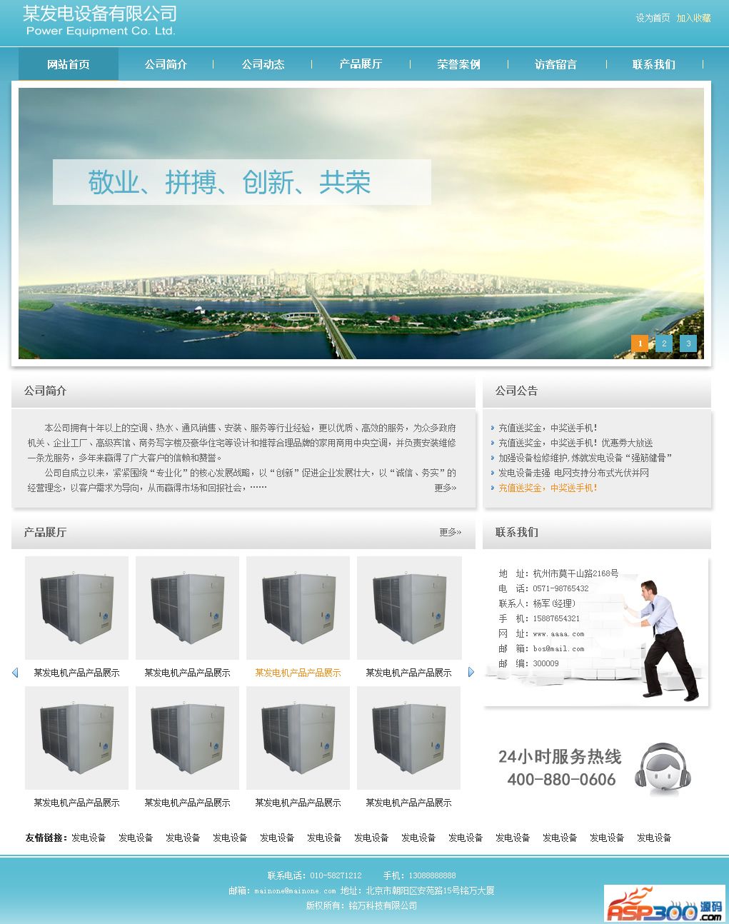 此蓝色机电设备企业站模板包可一键式安装,在安装时还可选择是否安装体验数据,此套模板整站用蓝色渐变做背景!以简洁、大方为主体,给人很舒服的感觉,模板中设计了"公司简介"、"公司动态"、"产品展示"、"荣誉案例"、"联系我们"、"访客留言"这些都是做为企业站的核心内容。