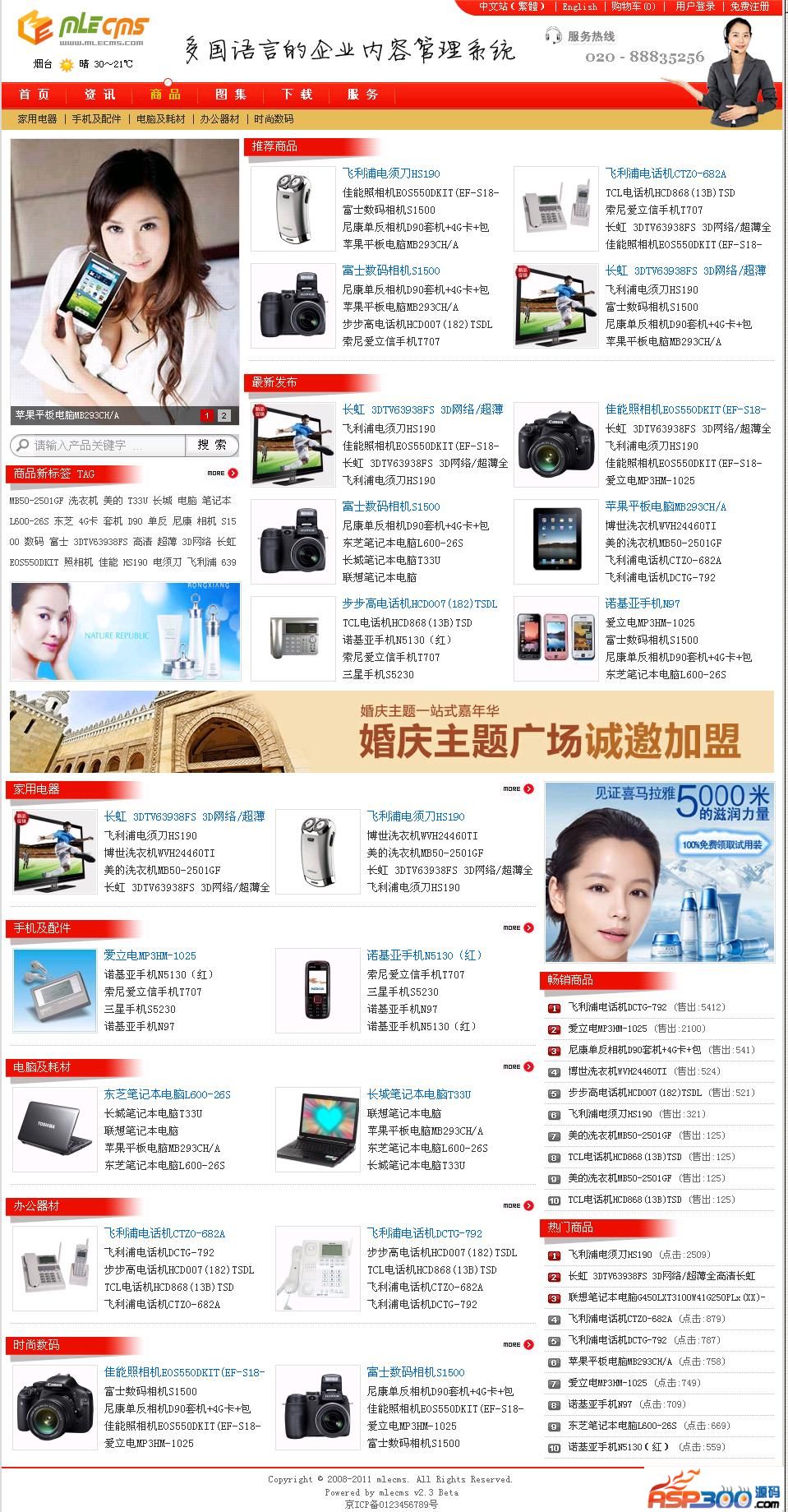 支持财付通、支付宝等多家平台支付接口,购物车、在线充值等方便快捷的电子商务功能。