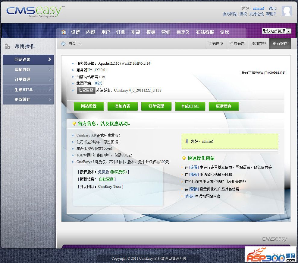 易通企业网站系统 别名CmsEasy 是国内唯一免费微信+手机端+微网站+手机短信+在线销售+多语言网站组合的企业营销管理平台,易通企业网站系统也称易通企业网站程序,是易通公司开发中国首套免费提供企业网站模板的营销型企业网站管理系统,系统前台生成html、完全符合SEO、同时有在线客服、潜在客户跟踪、便捷企业网站模板制作、搜索引擎推广等功能的企业网站系统。