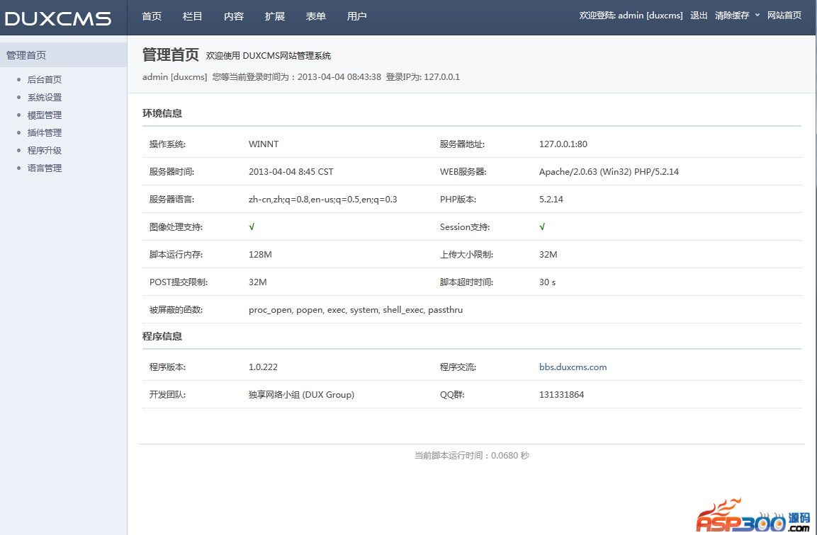 DuxCms2.0是一款采用php+mysql开发,基于thinkphp3.2权限行开发,适合中小企业、公司、新闻、个人等相关行业的网站内容管理。程序具有良好的用户体验用建议的操作,适合美工人员快速建立站点,您也可以根据您的需要进行app扩展来达到更加强大功能。您可以在遵循协议的情况下完全免费的使用我们的程序。