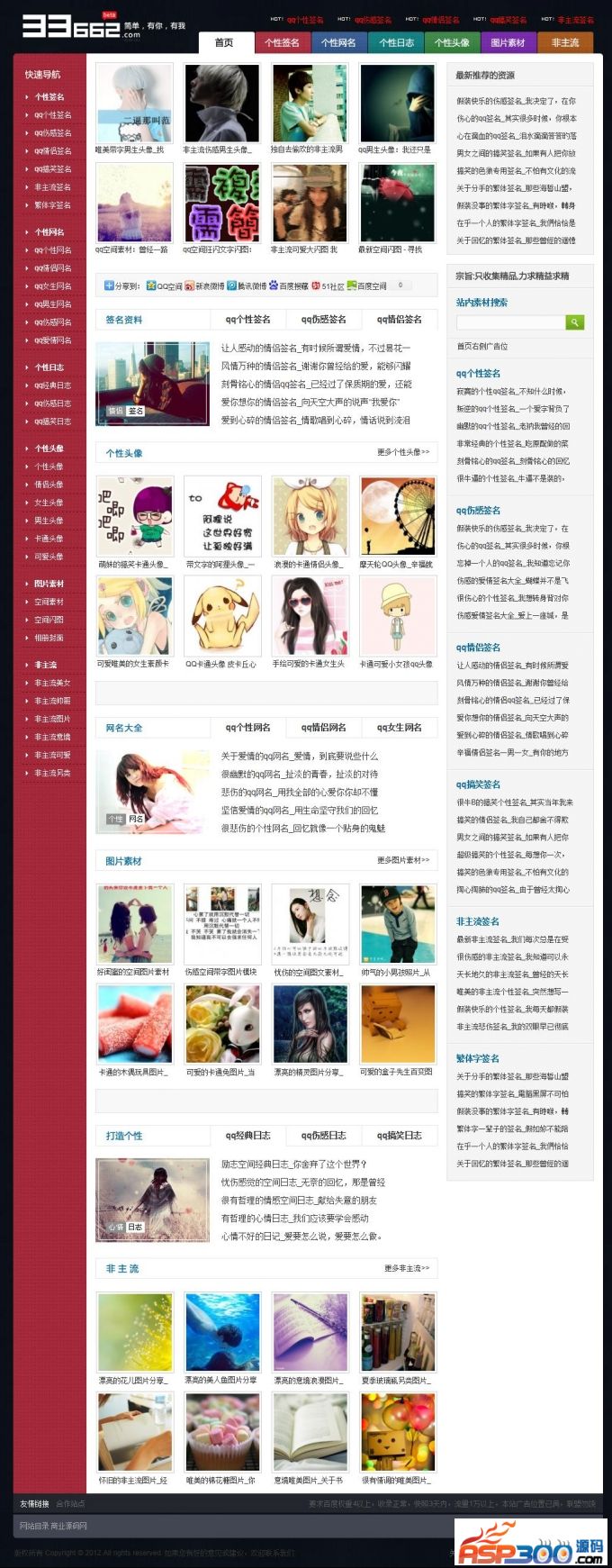 适用范围:2012个性Q站模板QQ个性签名门户网站源码程序
