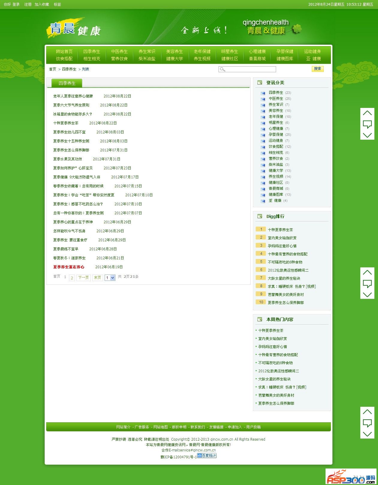 dedecms5.7版青晨健康资讯网绿色风格源码带整站数据,特别放送!
