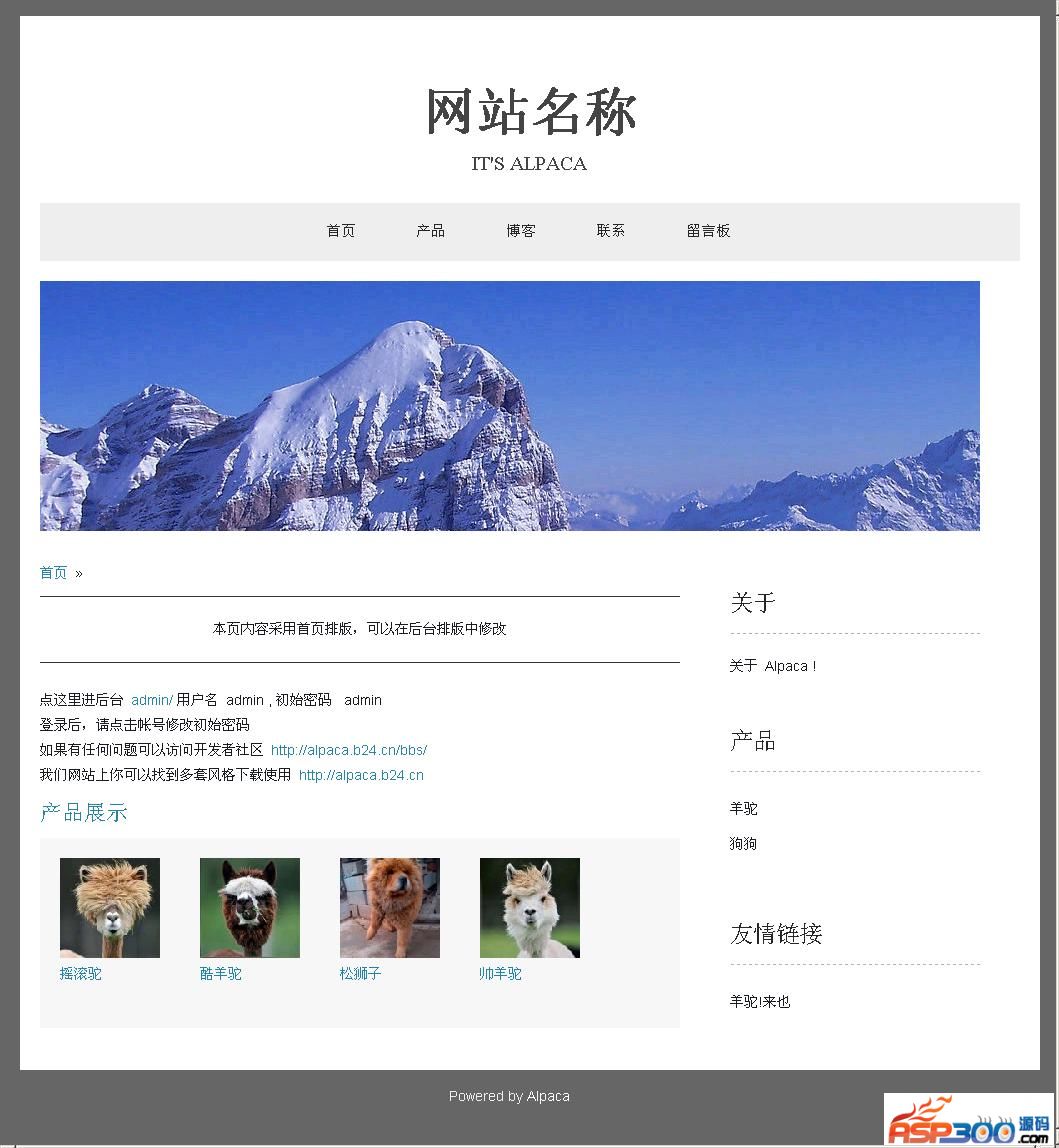 羊驼! 是一个开源的轻量级树状 CMS 系统。它基于 php + mysql 、SQLite 并以 b2core MVC 为底层架构。 可以方便快速的配置出个人、企业网站。羊驼 SQLite 版本在许多用户的要求下, 羊驼发布了 SQLite 版本。 SQLite 的优势:轻量,低负载,方便管理和备份。尤其适用于企业或者小型个人网站。 目前版本需要 php 5.3 版本以上 。功能特性方便上手, 5 分钟即可定制出简易的网站无限级别子栏目子栏目可设置独立风格(站中站)支持自定义原型属性,可以管理复杂的页面可实现复杂页面排版静态url, 面向 SEO 优化缓存系统数据实时备份、恢复高度可配置