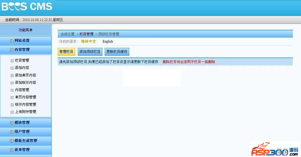 后台操作:更改下级栏目添加完成后返回栏目列表