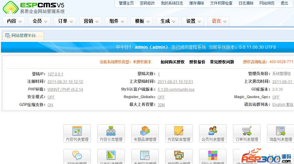易思ESPCMS V6在V5的基础上,更新了大量的功能,主要软件特性如下: