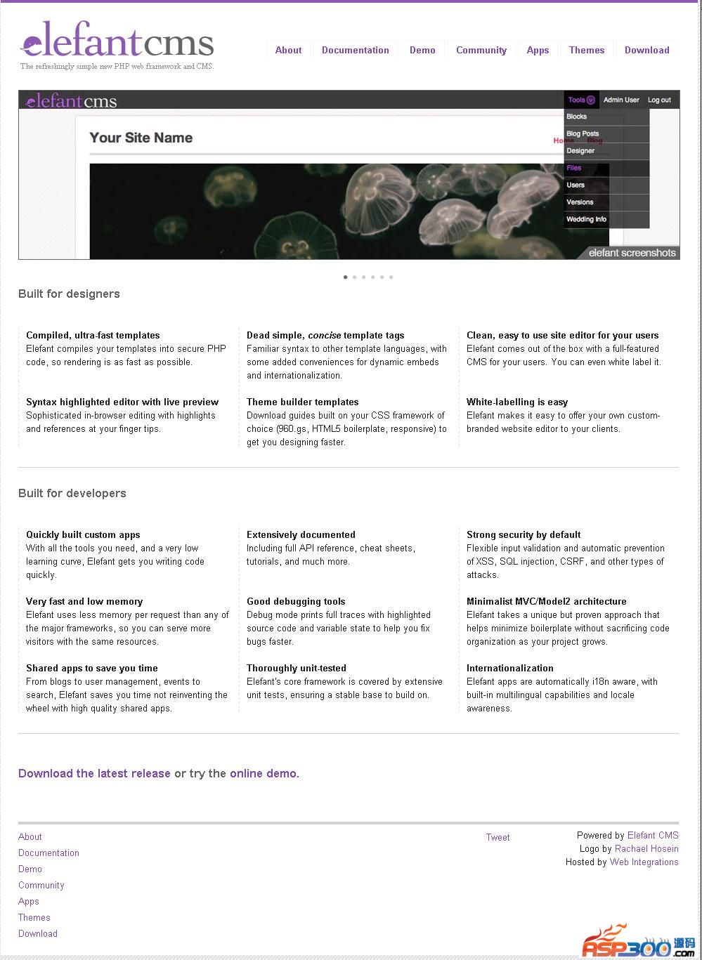 Elefant是一个在PHP中重新想象的MVC框架系统,包括一个完整简单全新的CMS。