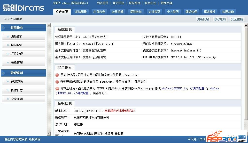 DirCMS即易创内容管理系统 2012-01-29 更新说明