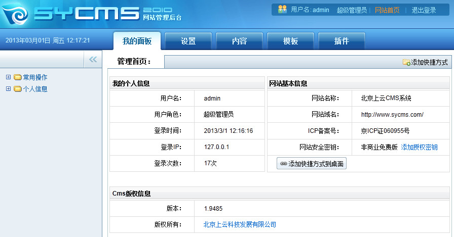 上云CMS系统是国内自主开发的一款具有强大的数据负载能力的文章管理系统,具有模型丰富,操作简单,可视化标签模板,安全稳定的特色。SyCMS是上云科技推出的一款采用.net+sqlserver/access的新一代内容管理系统。SyCMS并非凭空的创造。上云科技拥有12年的高品质商业建站经验。从大型门户到品牌网站,通过解决客户实际问题,不断的进行沉淀和优化,最终形成的成熟产品。SyCms强大,灵活,易于学习和应用。非商业用户免费使用。