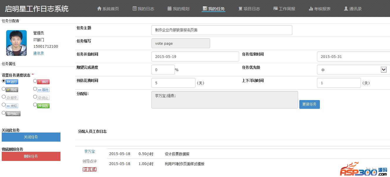 启明星工作日志用于记录项目里的日志,部门主管或者经理建立项目并设定项目的分类和成员。项目成员填写日志,上级领导可以考核成员工作并生成KPI报表。